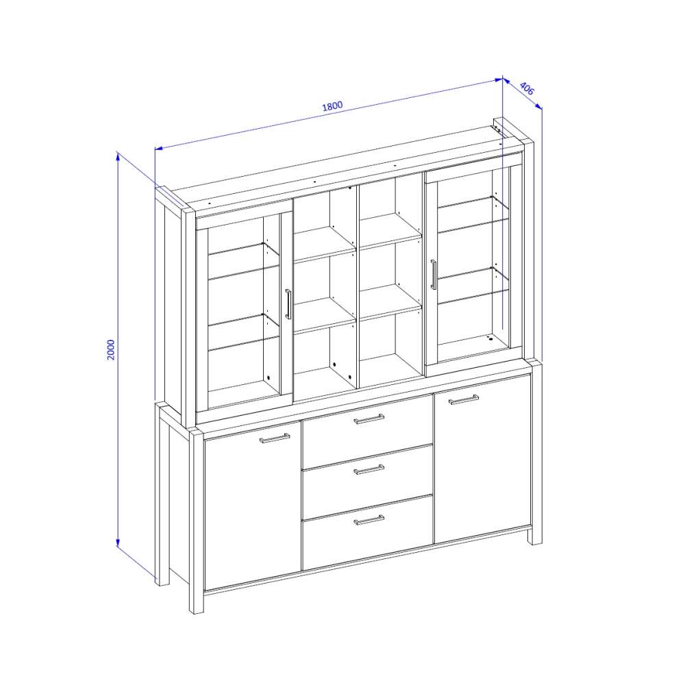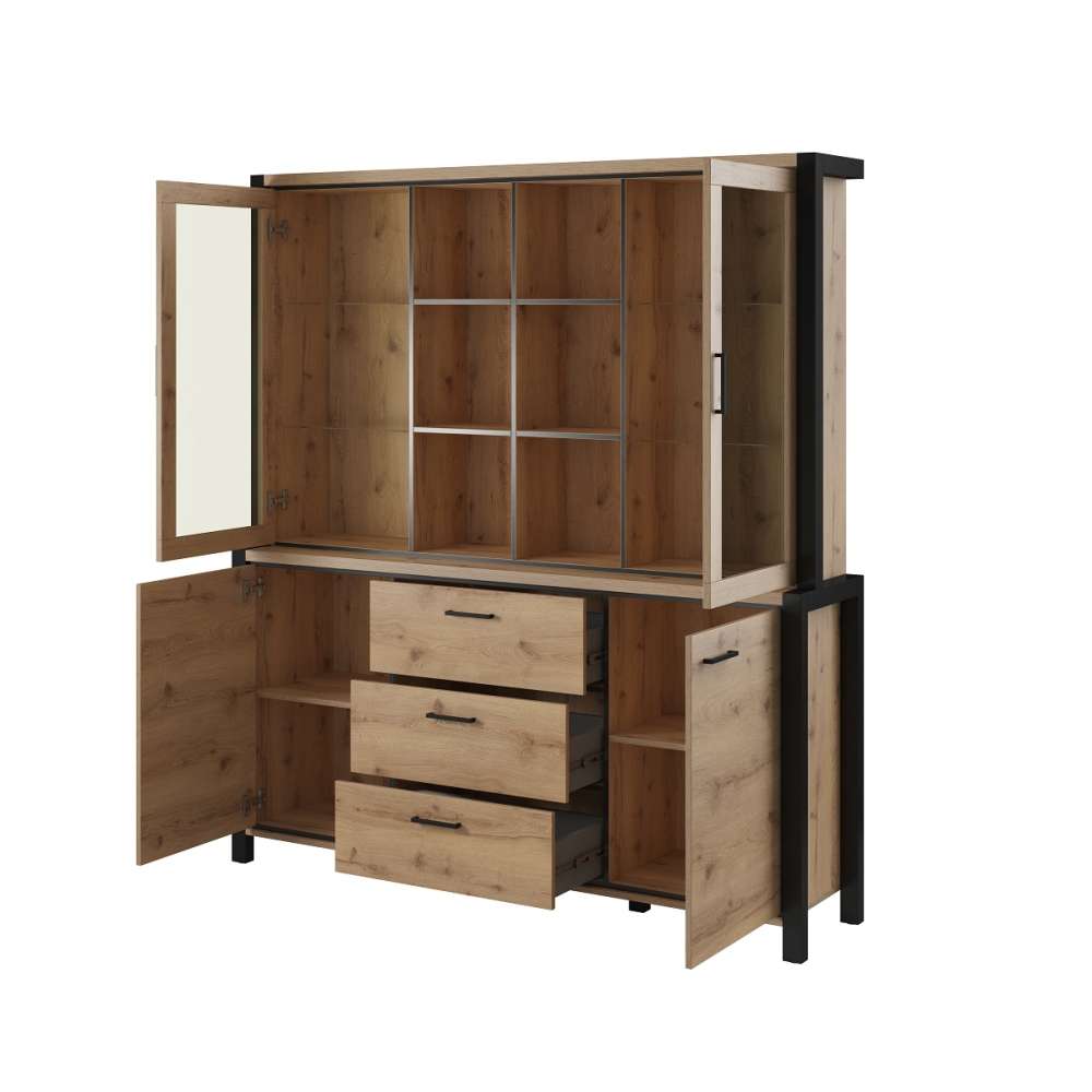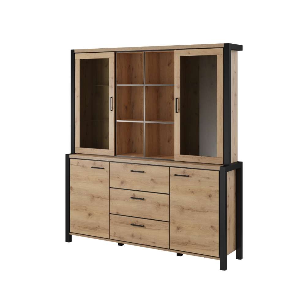 Stort vitrineskap AKTIV 180x200 cm - eik og sort
