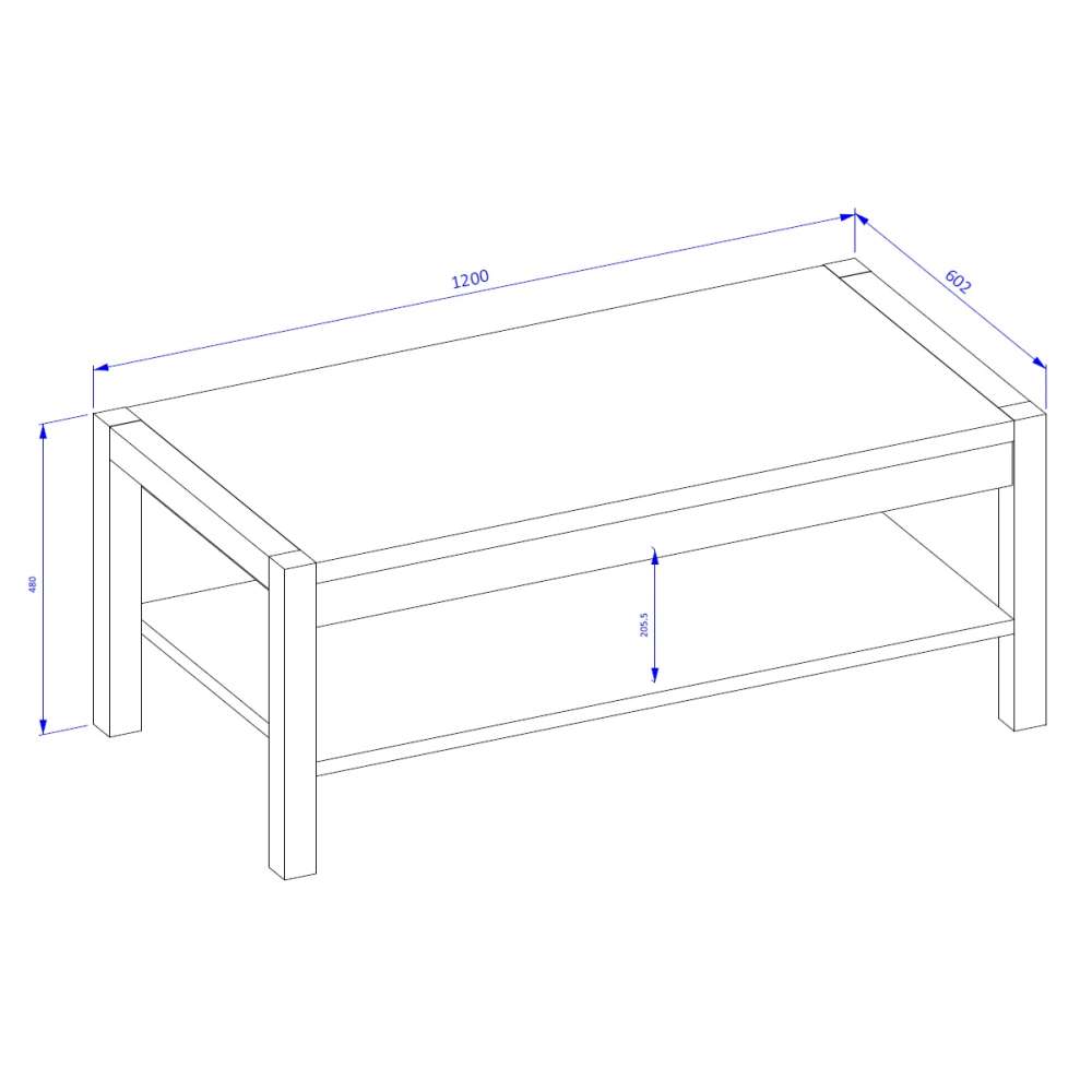 Stuebord AKTIV 120x60 cm - eik og sort - med hylle