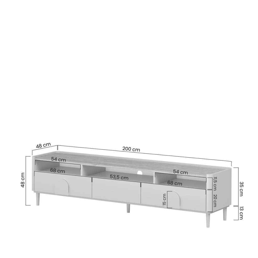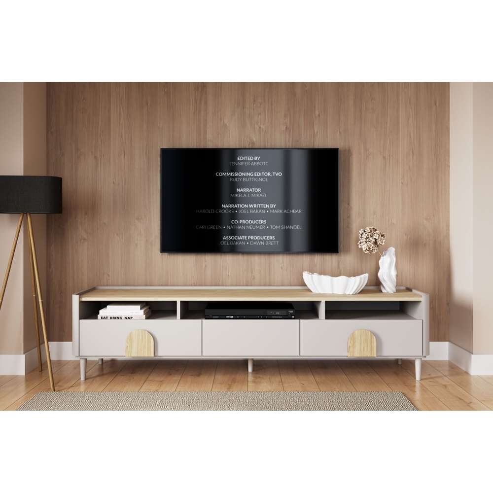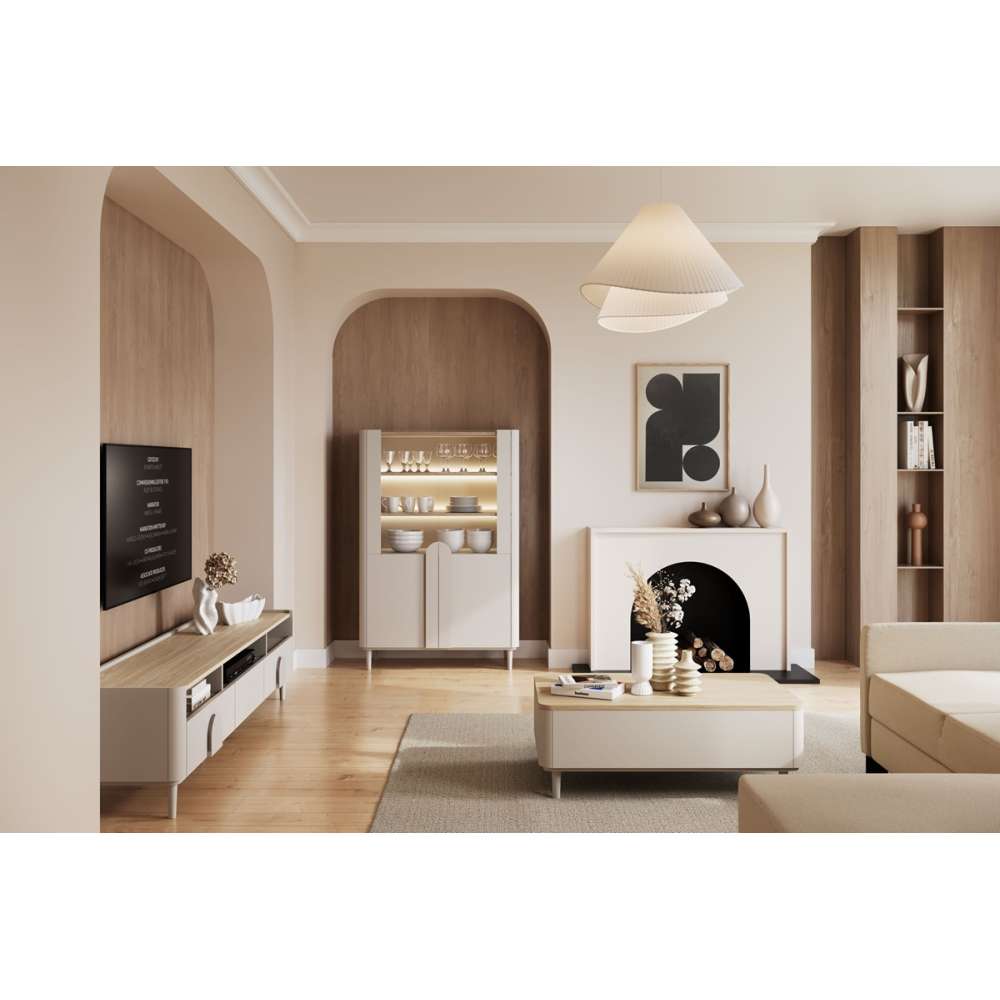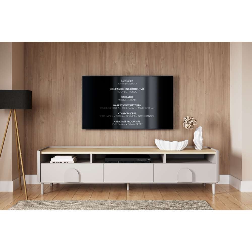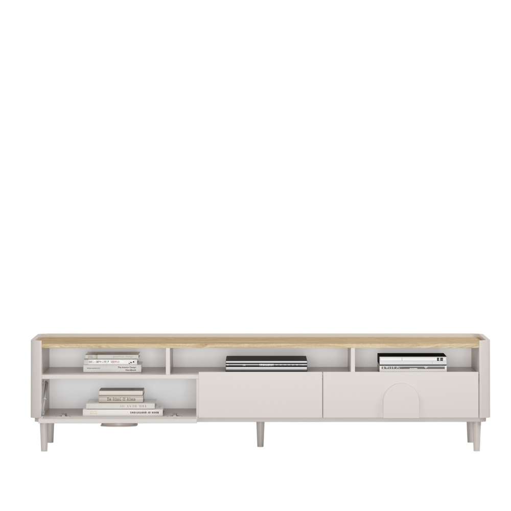 Tv-benk AMILIO - cashmere med oljet eik topplate, avrundede kanter