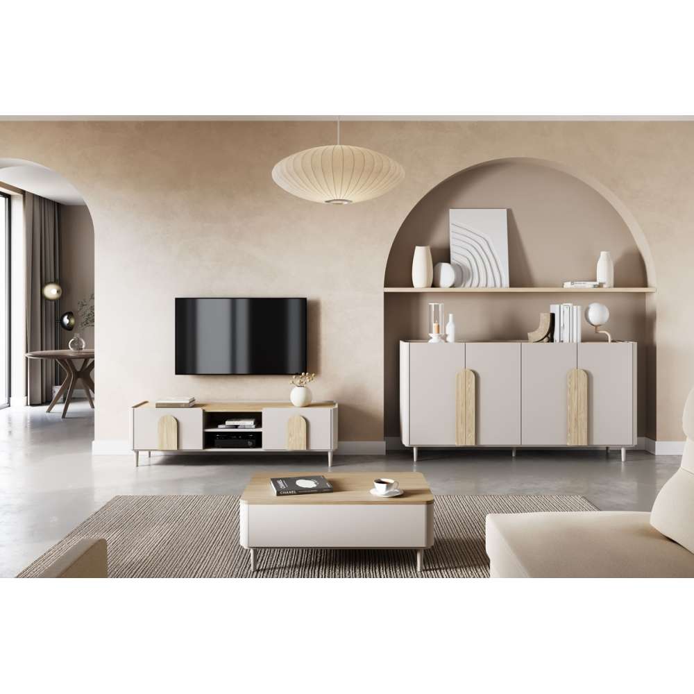 Skjenk AMILIO - cashmere med oljet eik topplate, avrundede kanter