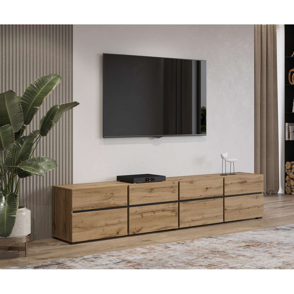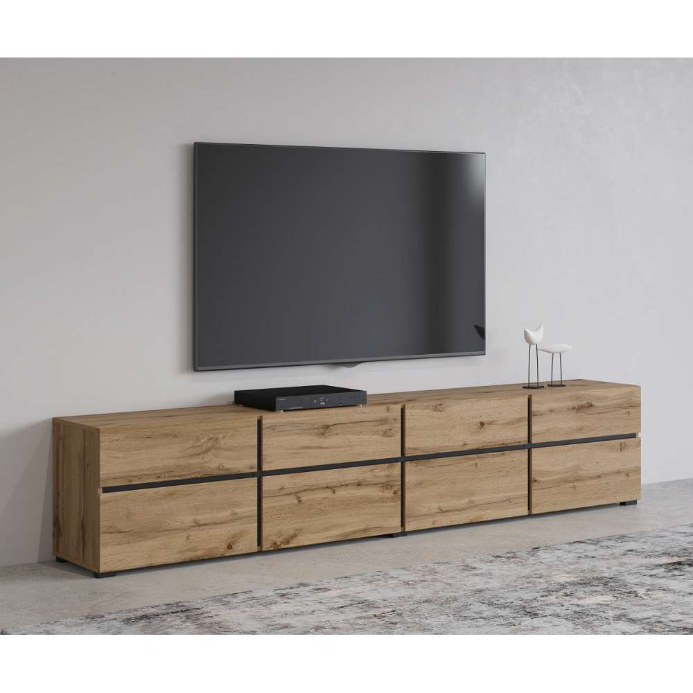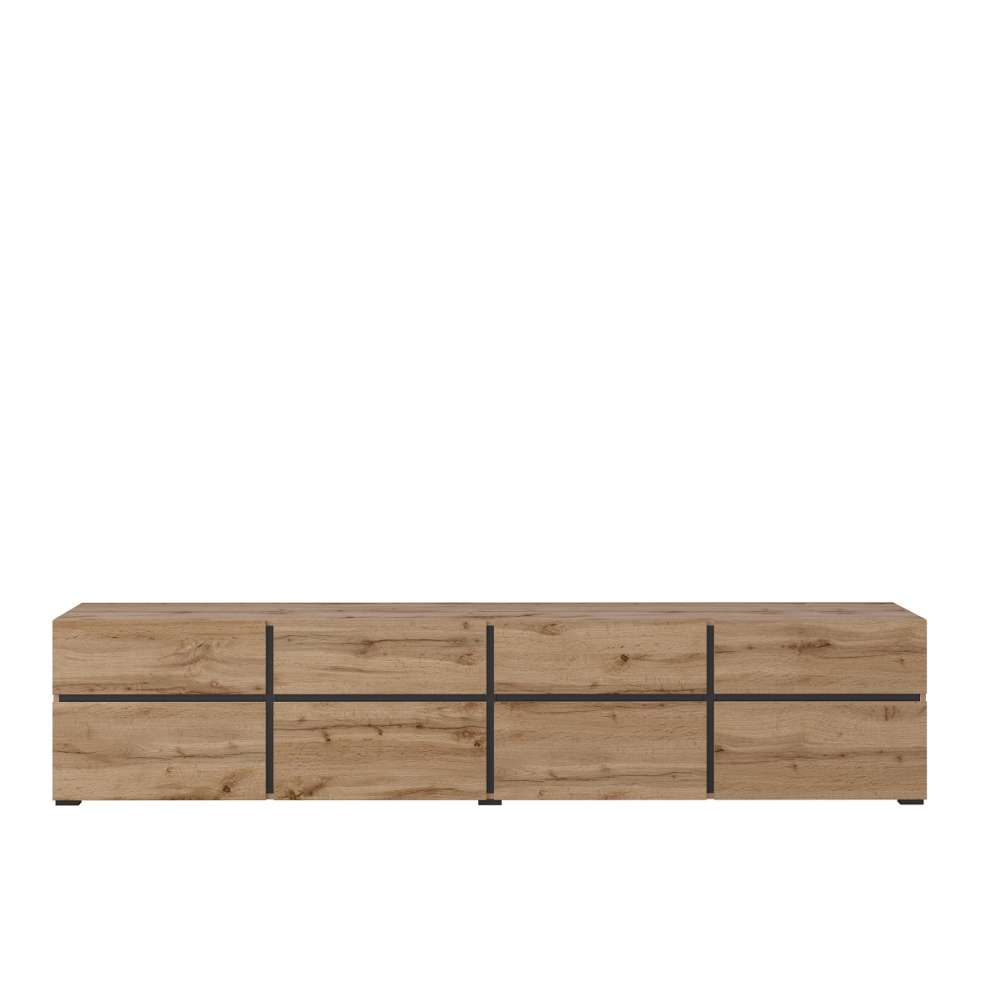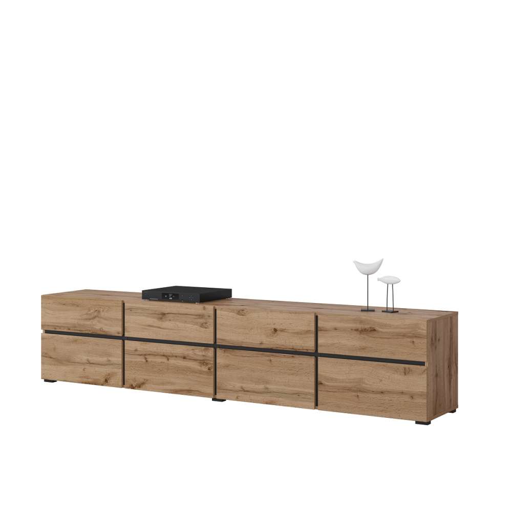 Tv-benk CROSS 225x48 cm - eik og sort - 4 dører og 4 skuffer