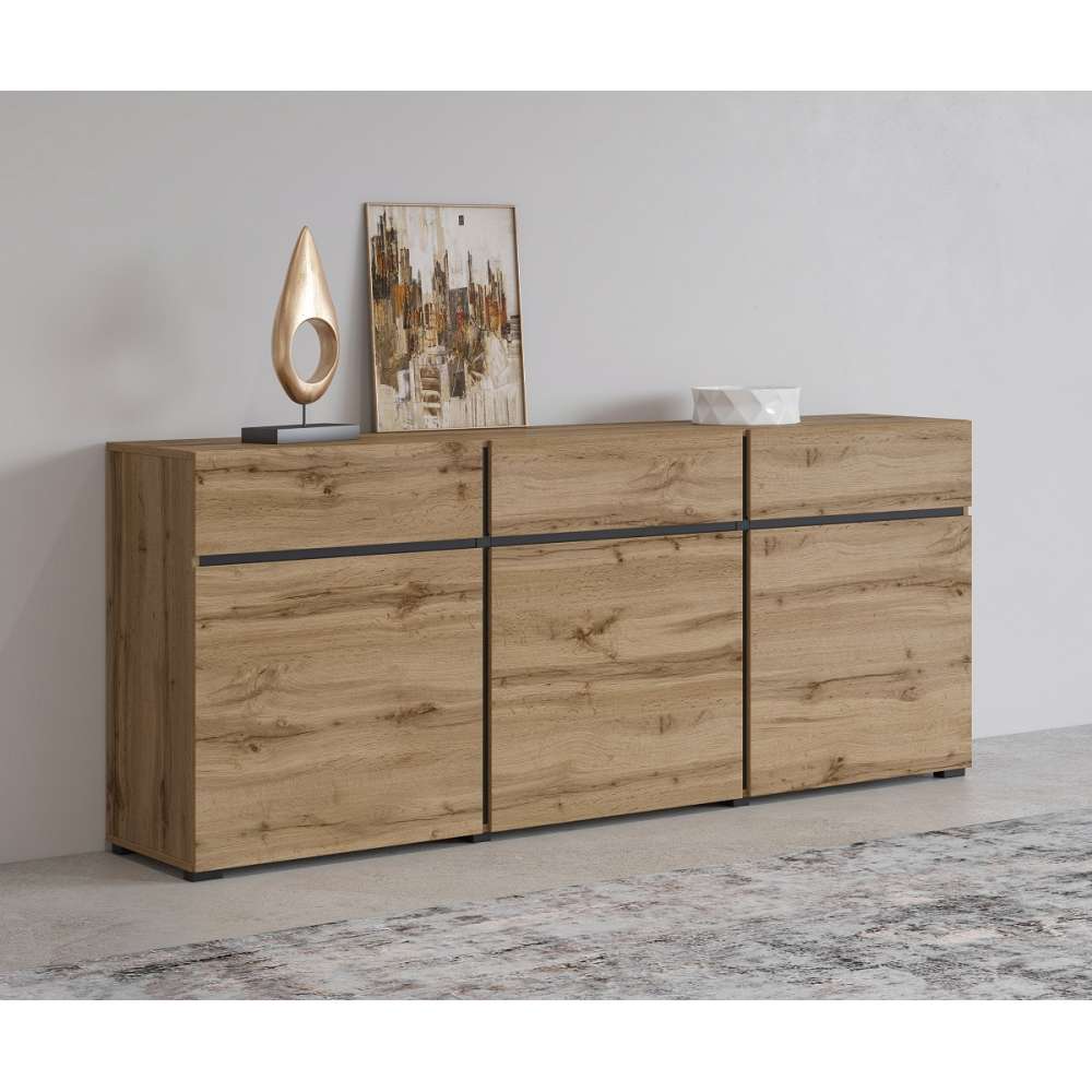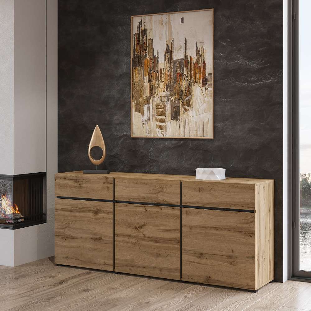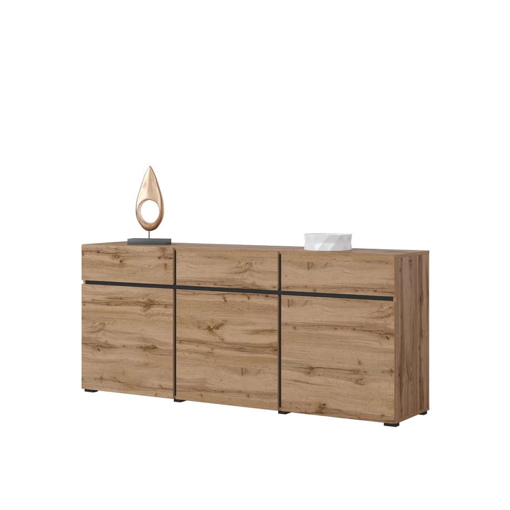 Skjenk CROSS 180x78 cm - eik og sort - 3 dører og 3 skuffer