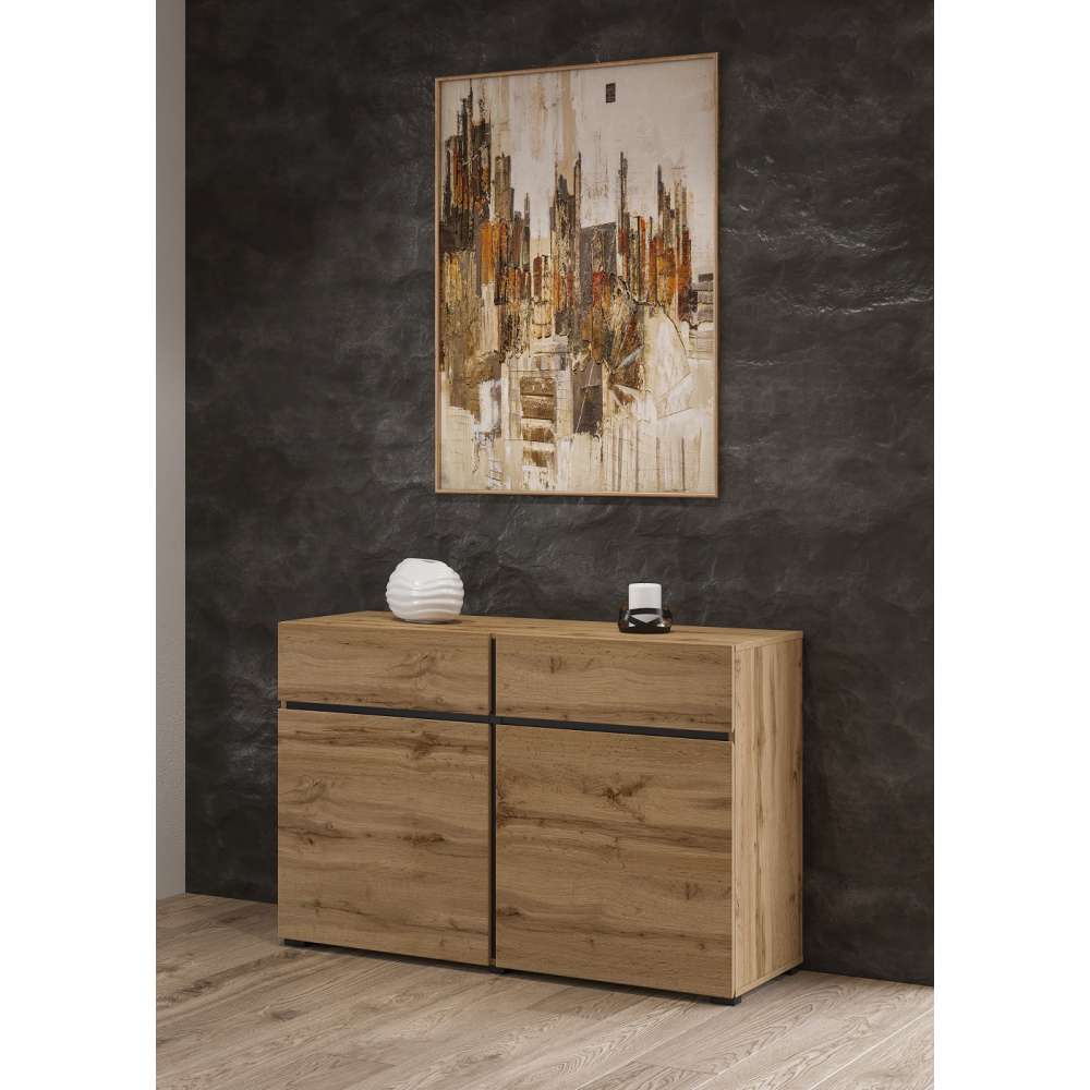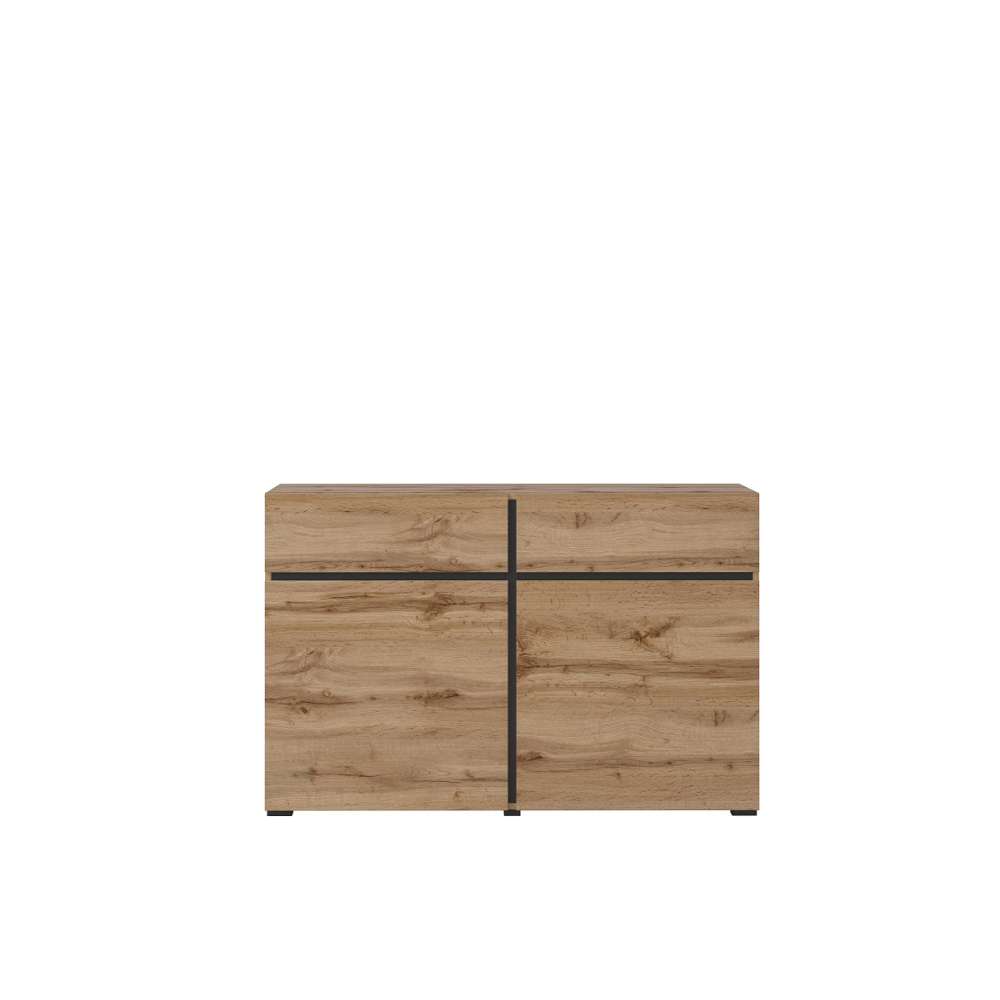 Skjenk CROSS 119x78 cm - eik og sort - 2 dører og 2 skuffer