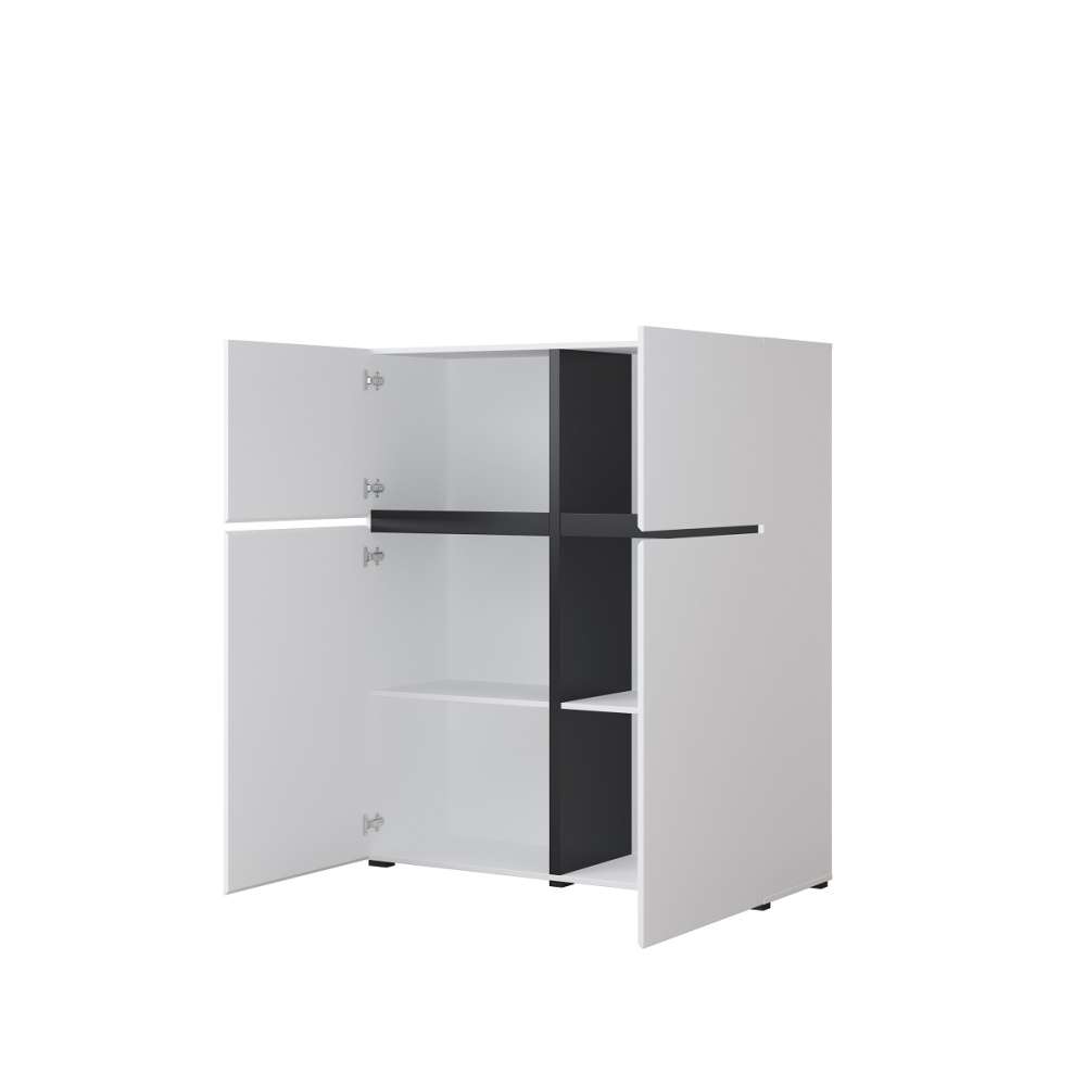 Skap CROSS 119x139 cm - hvit og sort - 2 dører og hyller