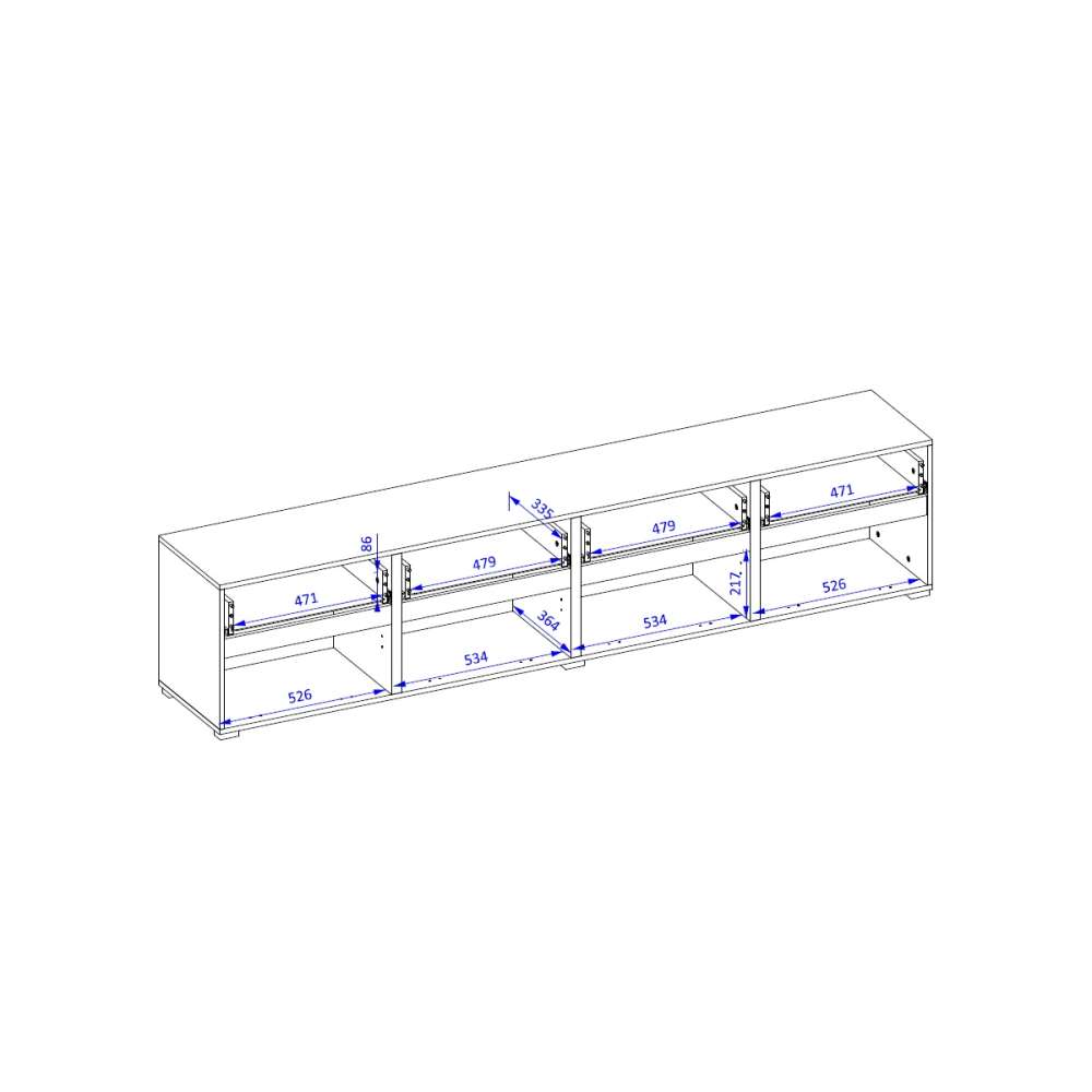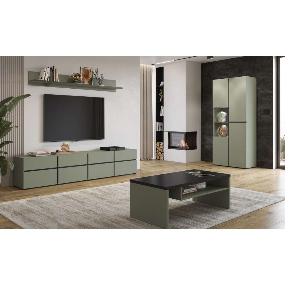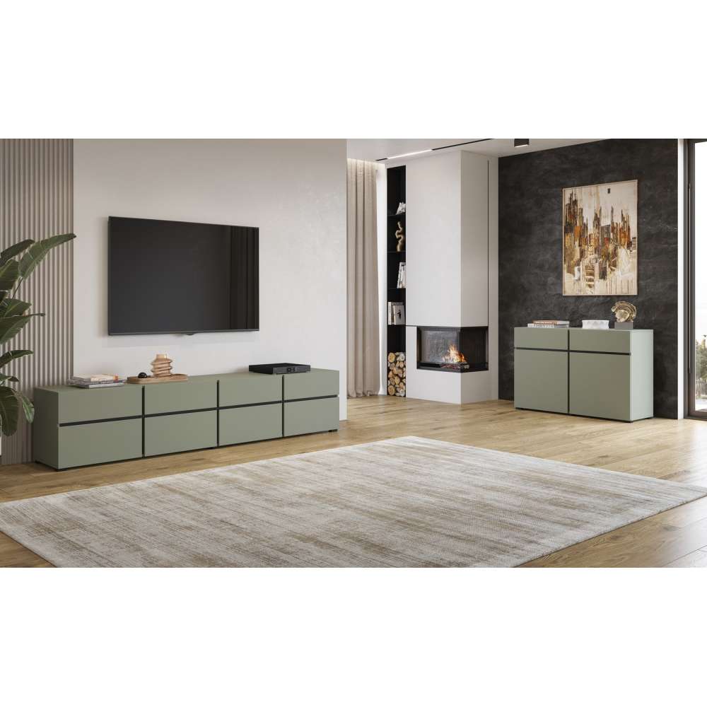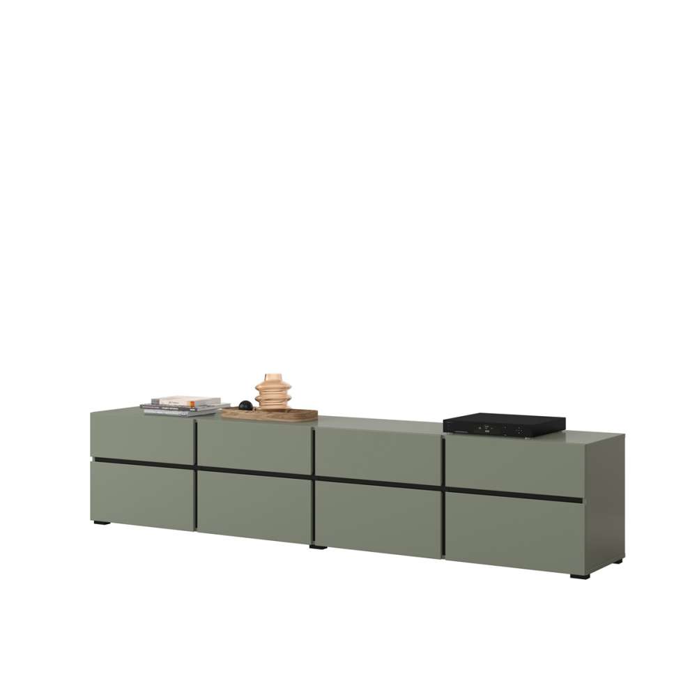 Tv-benk CROSS 225x48 cm - grønn og sort - 4 dører og 4 skuffer