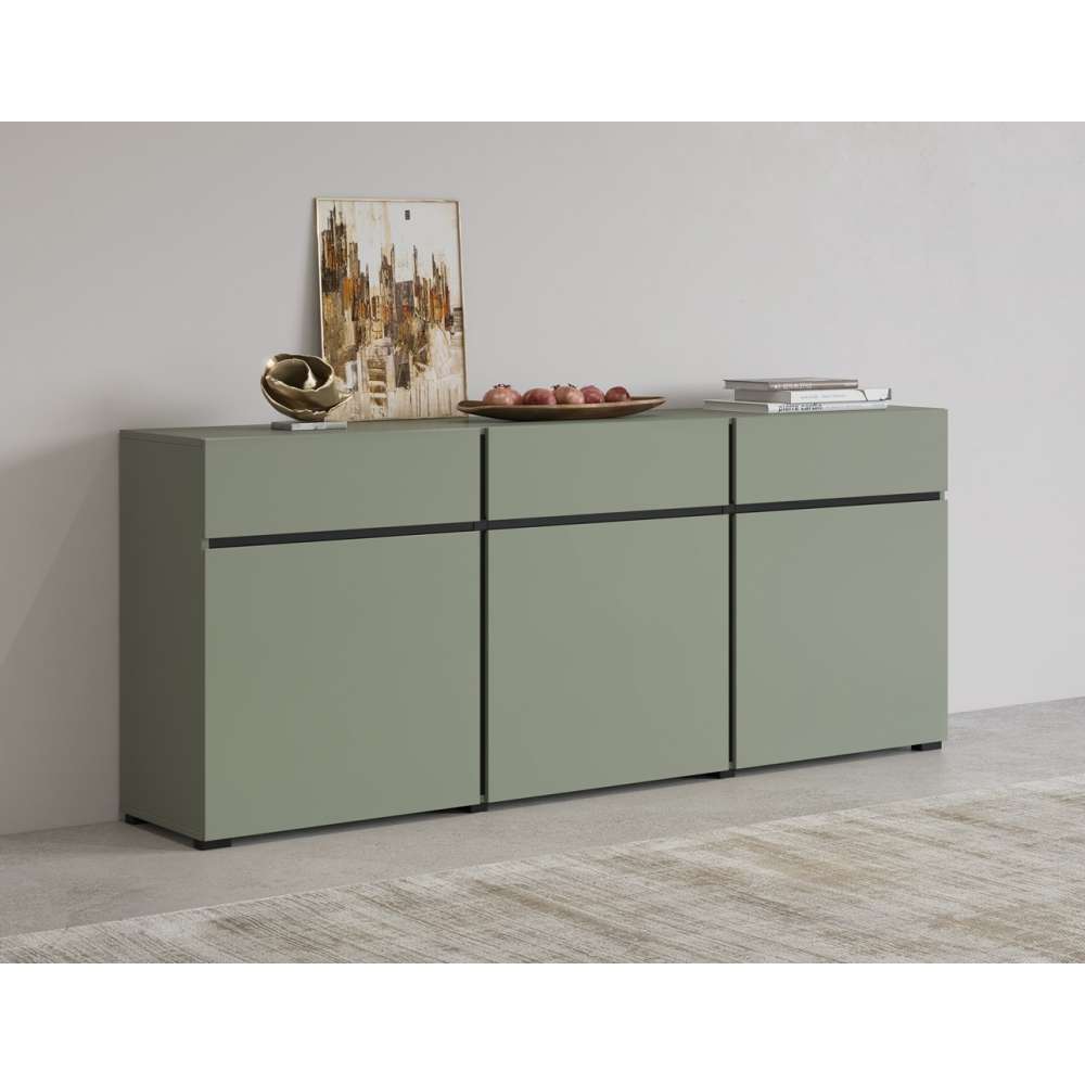 Skjenk CROSS 180x78 cm - grønn og sort - 3 dører og 3 skuffer