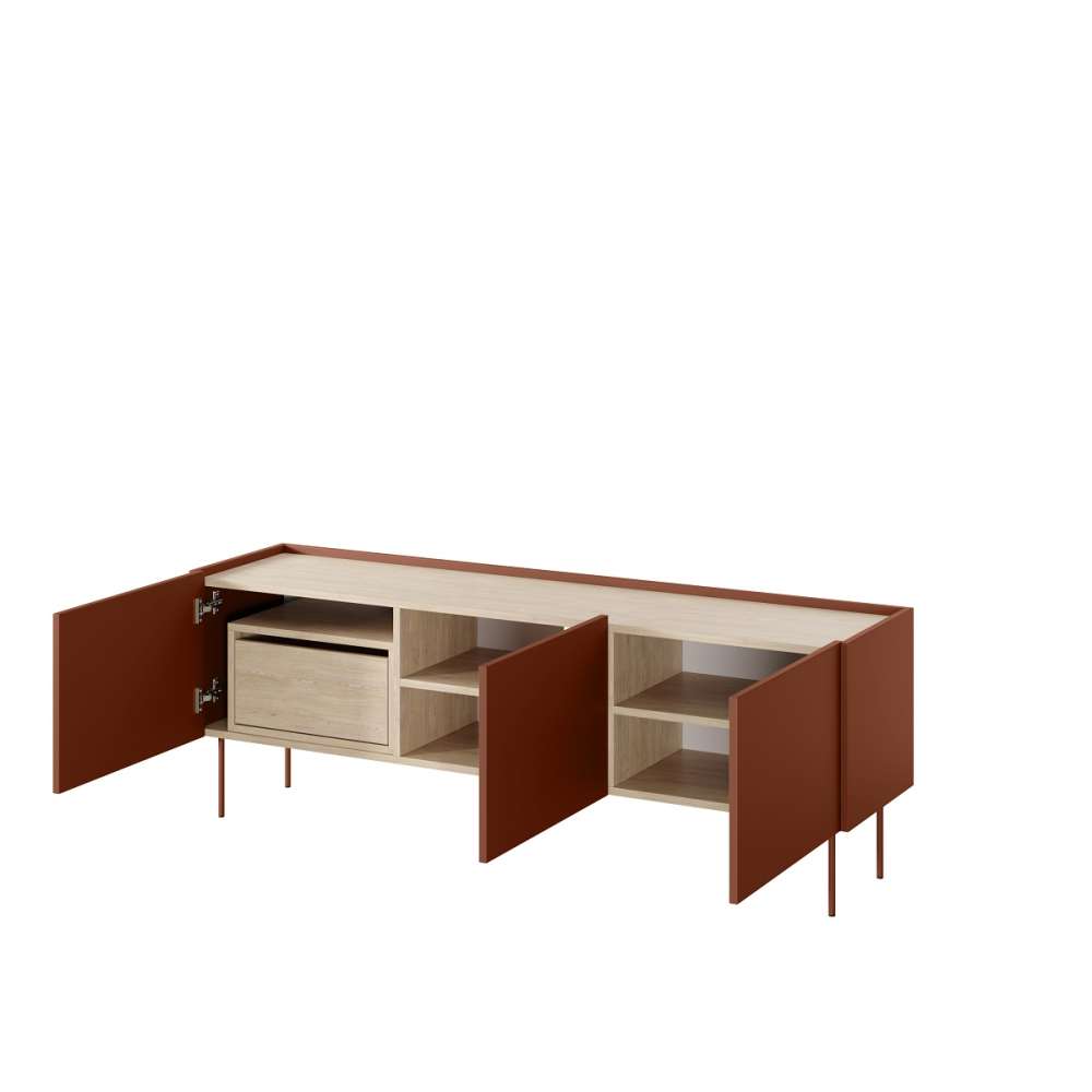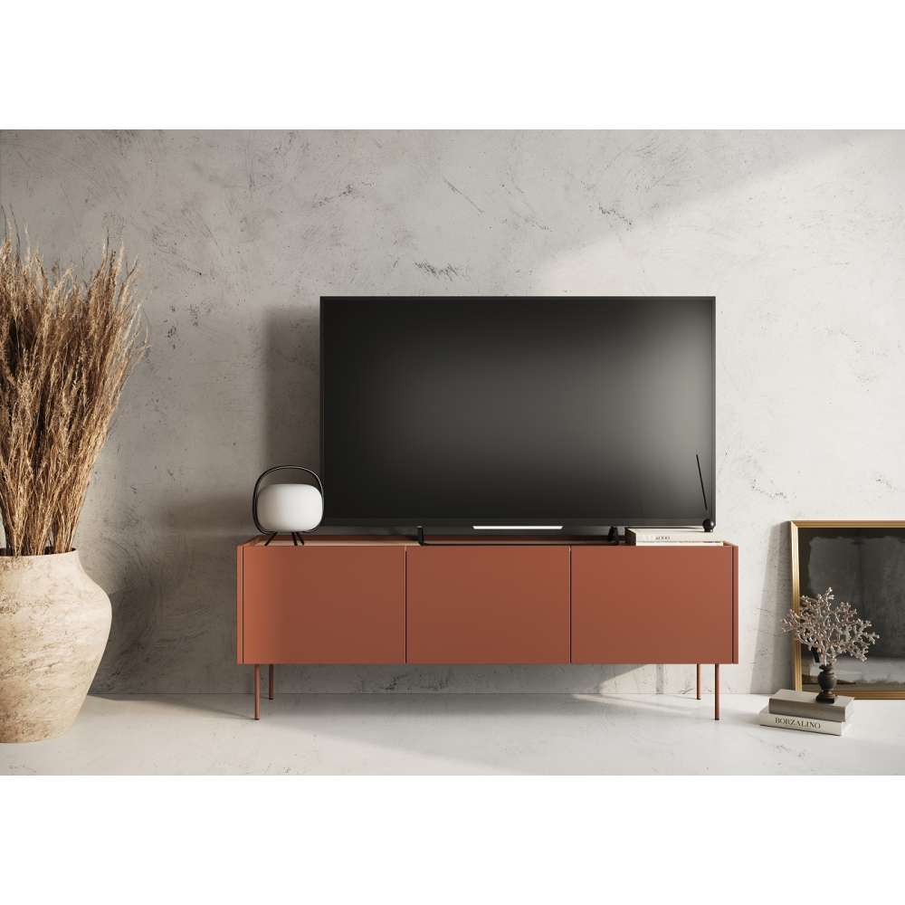 Tv-benk DESIN - rustikk rød matt - 3 dører - mulighet for å legge til innvendige skuffer