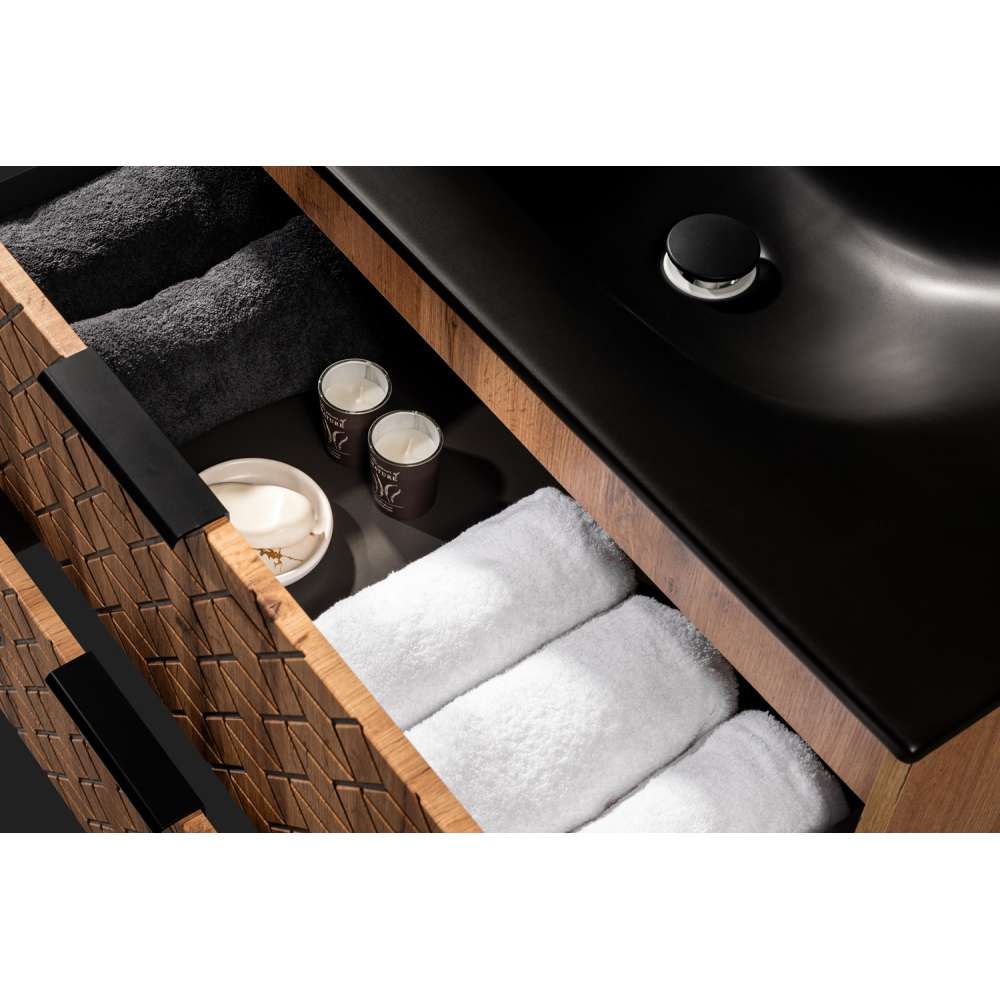 Servantskap DIAMOND 80 - sort - eik - 2 skuffer
