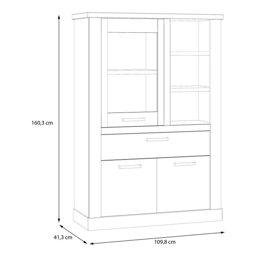 Vitrineskap DURO - 3 dører, 2 skuffer