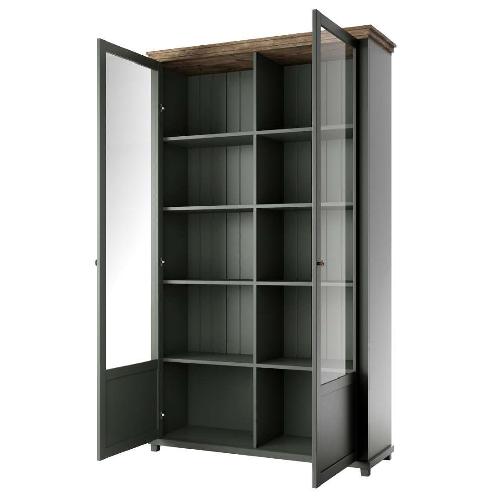 Vitrineskap EVORA 126x200 cm - vintage green - provencalsk stil