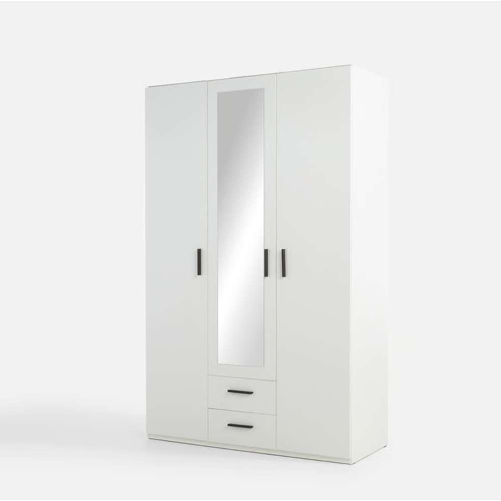 Garderobeskap TRAWEN 133x210 cm - hvit matt - 3 dører - 2 skuffer
