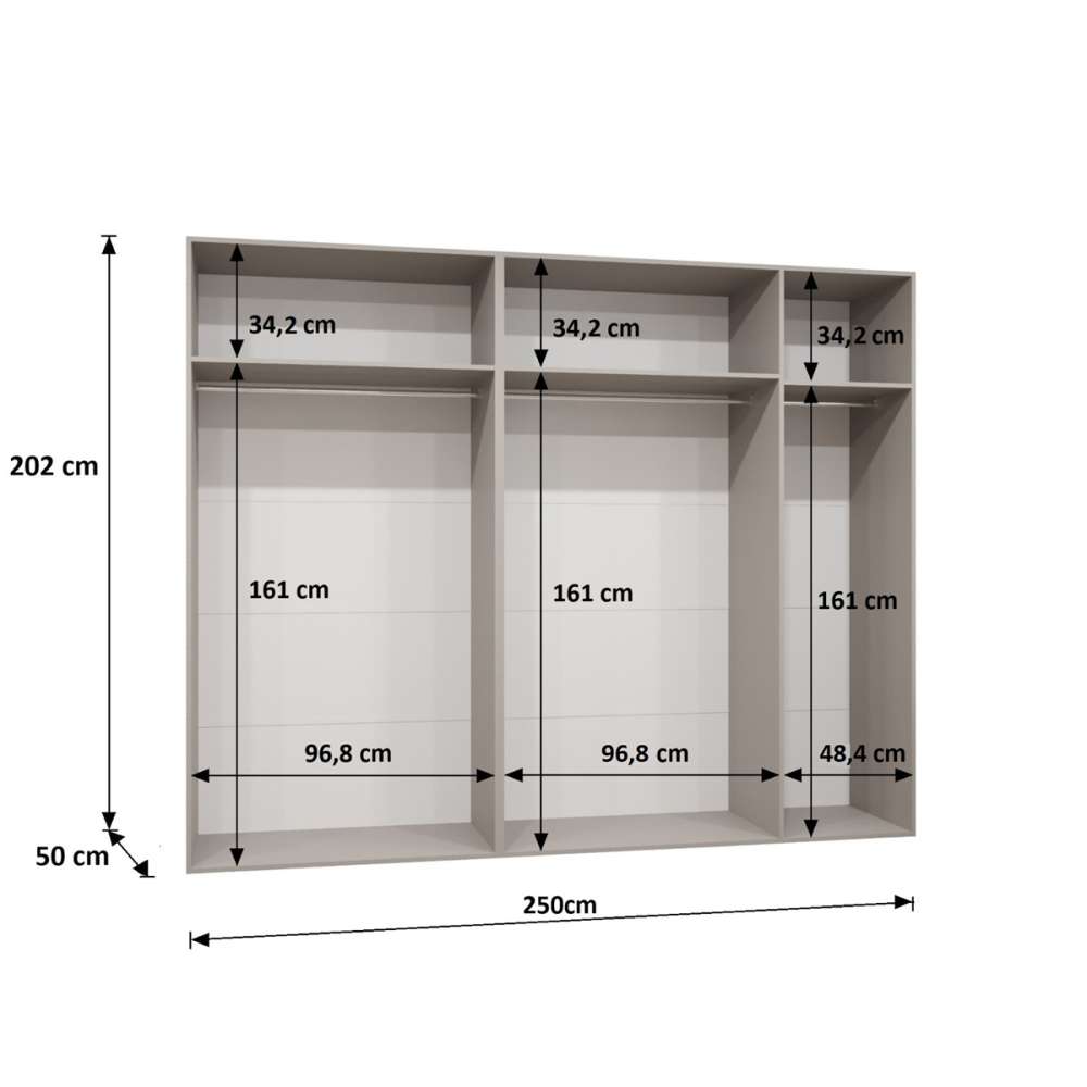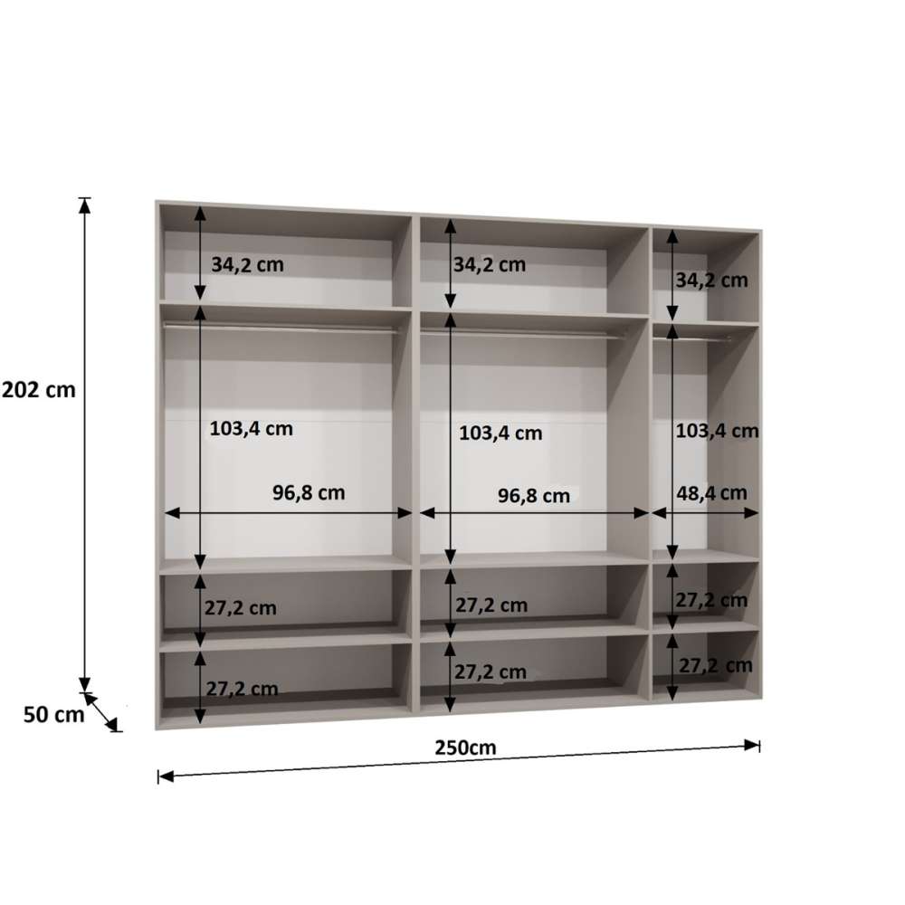Garderobeskap består av 2 garderober: 1x100 cm og 1x150 cm