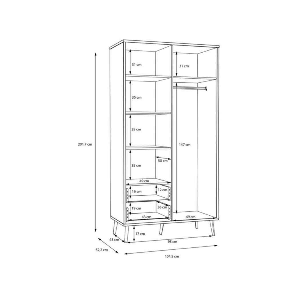 Garderobeskap HARLLSON - 2 dører, 2 skuffer