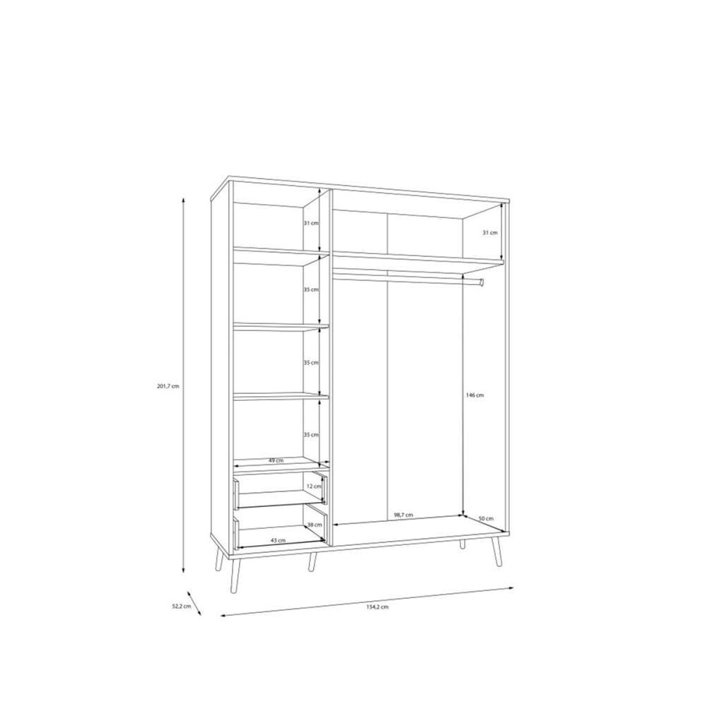 Garderobeskap HARLLSON - 3 dører, 2 skuffer