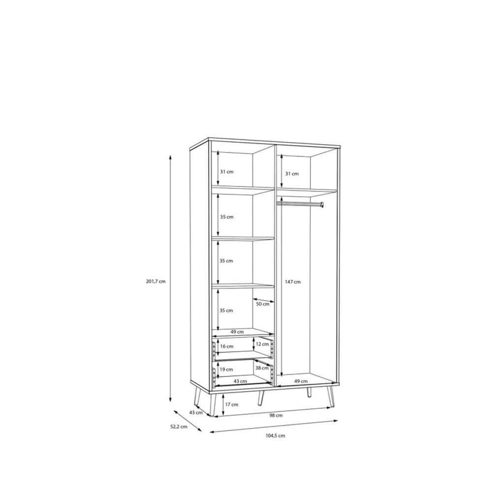 Garderobeskap HARLLSON - 2 dører, 2 skuffer