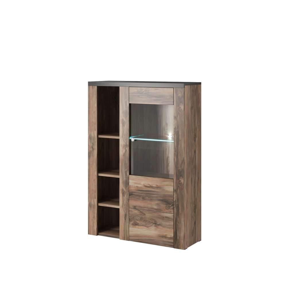 Vitrineskap Larona 100x145 cm - mørk valnøtt - med belysning