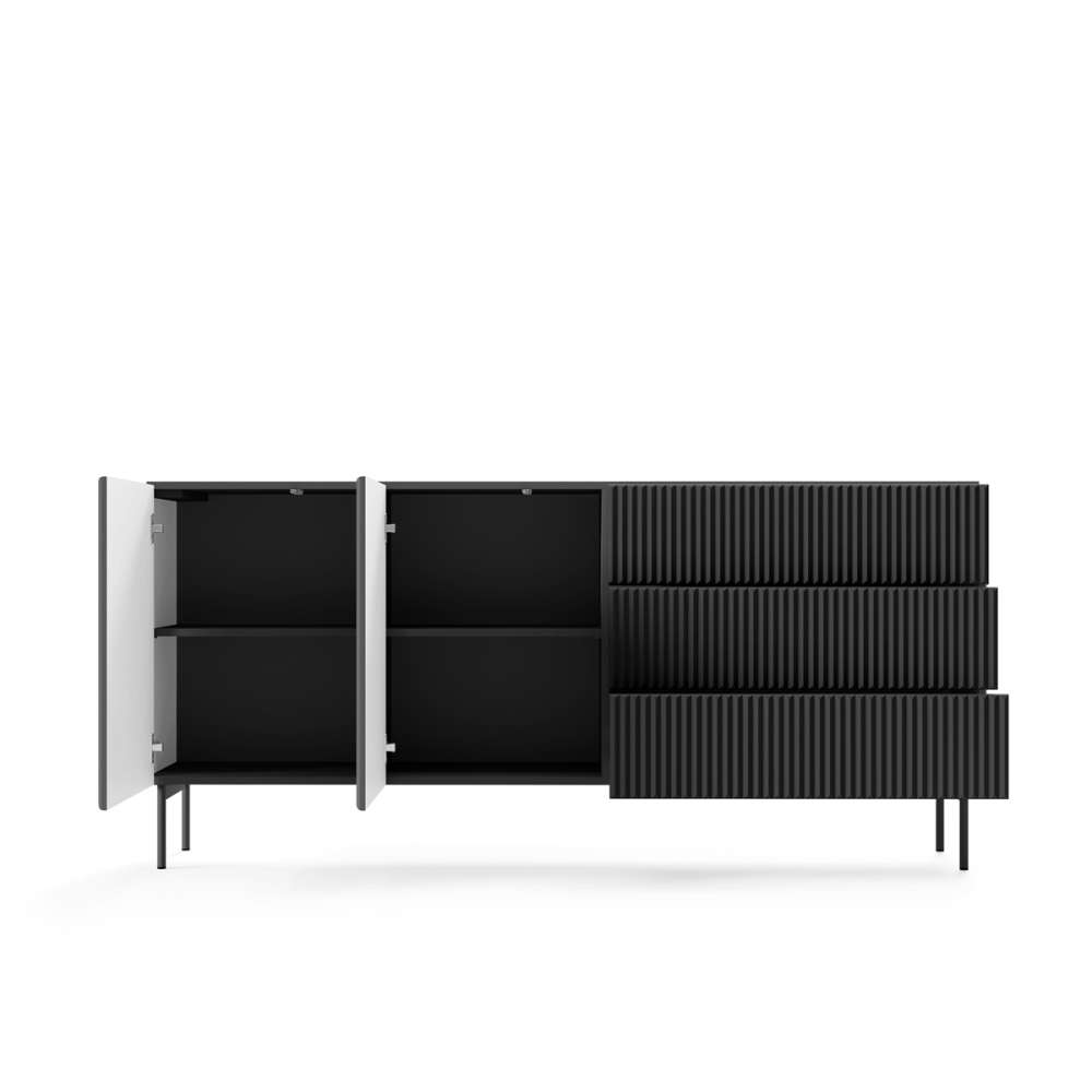 Skjenk MUTI 177x81 cm - sort matt - 2 dører og 3 skuffer