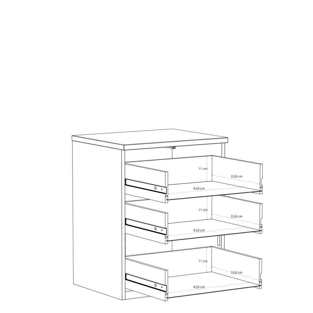 håndtak: utskjæring i fronten, push to open (øverste skuff)
