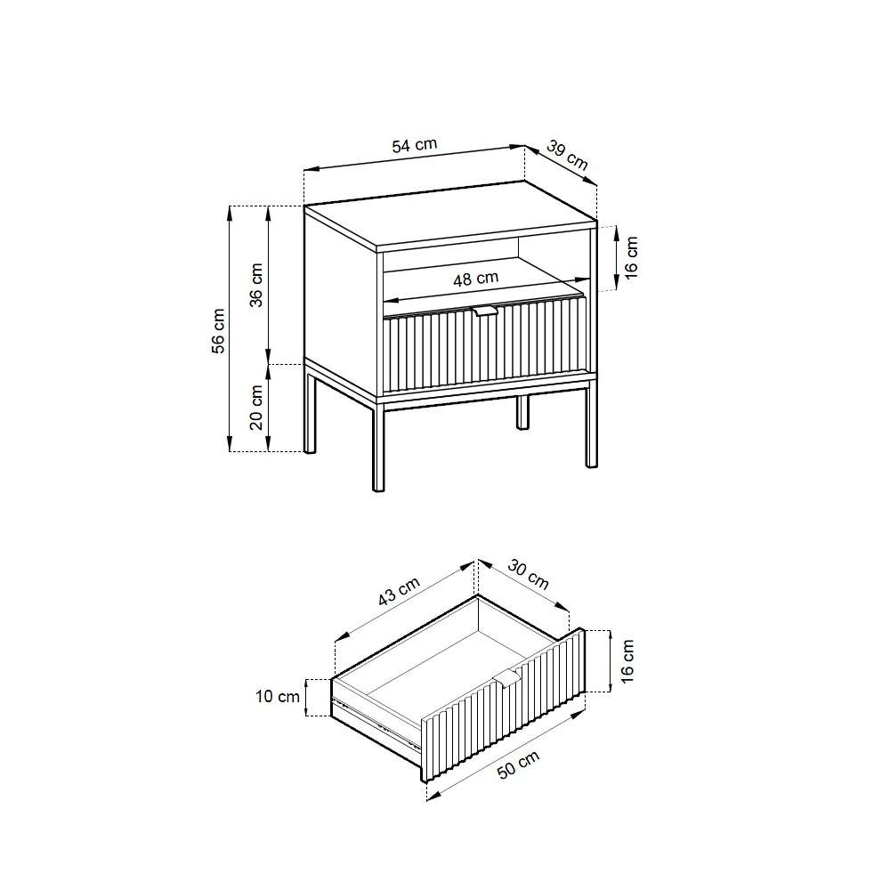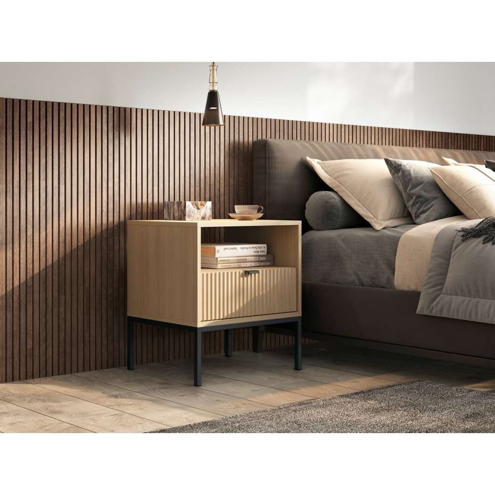 Nattbord NOVA - eik - 6 skuffer - høye metallben