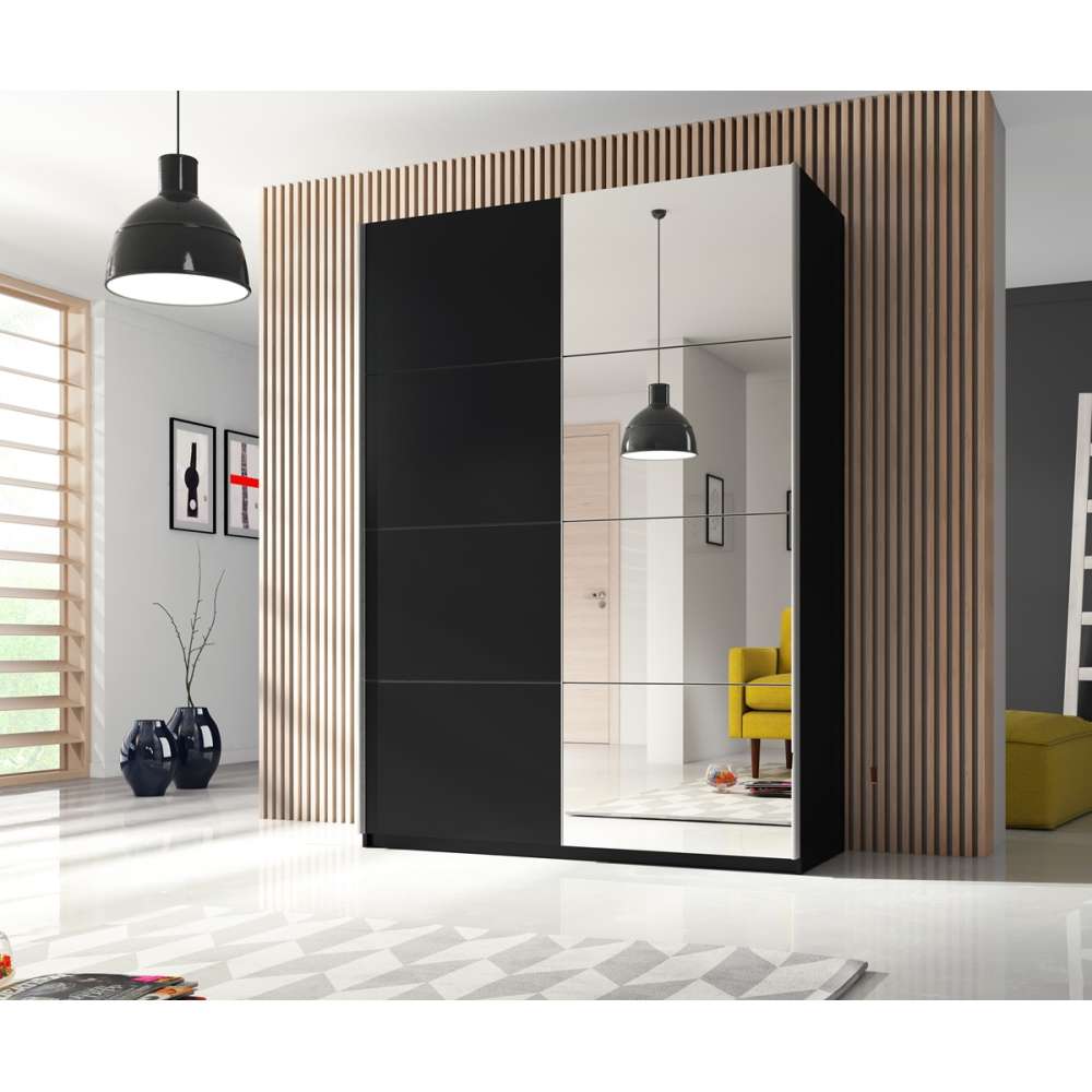 Garderobeskap BETA 120x210 - sort - speil - skyvedører