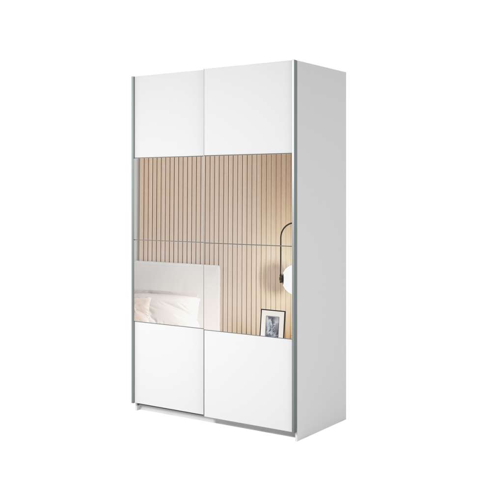 Garderobeskap BETA 120x210 - hvit - speil - skyvedører
