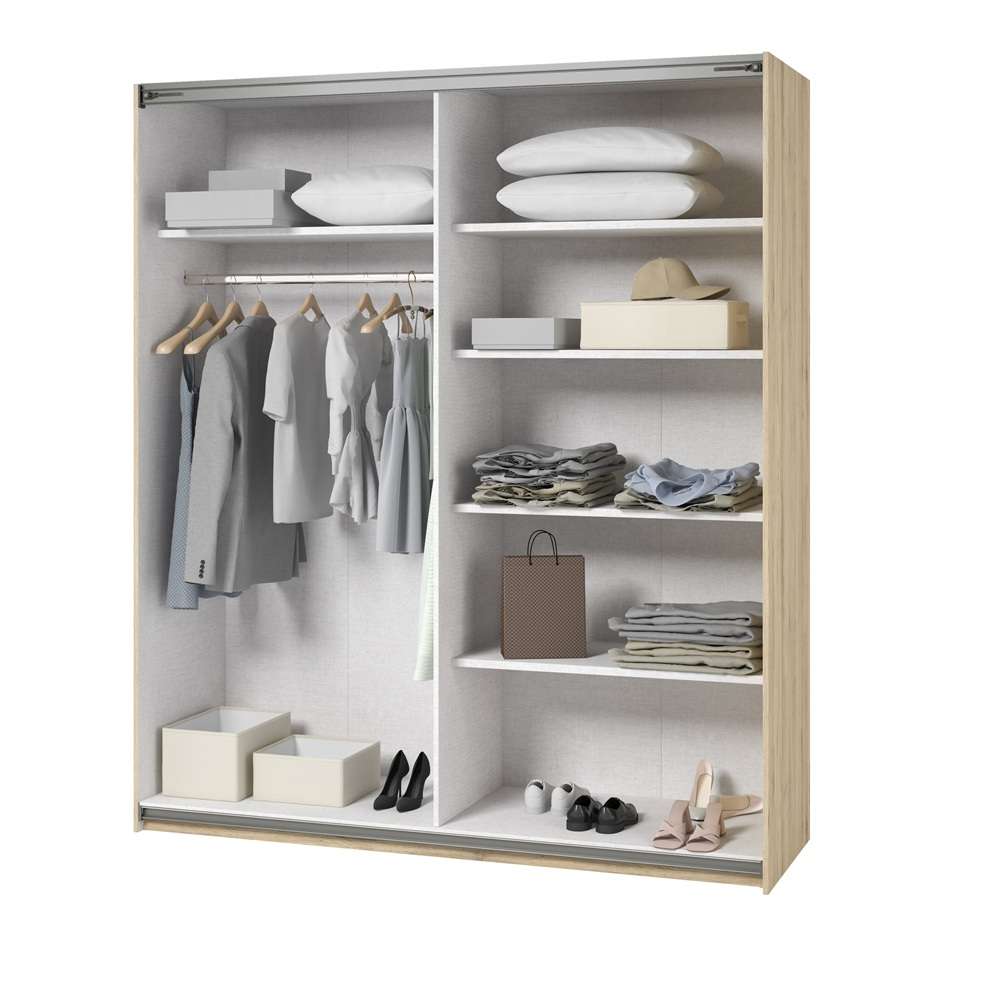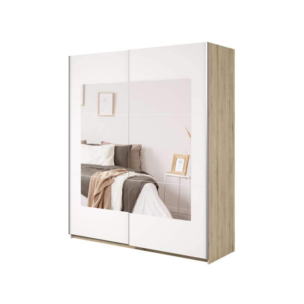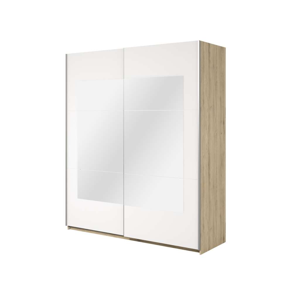 Garderobeskap BETA 180x210 - eik - hvit - speil - skyvedører