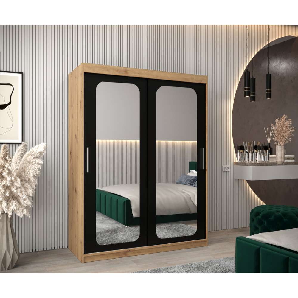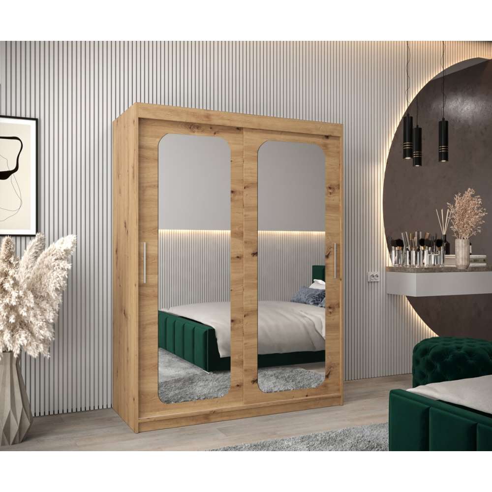 Garderobeskap PROMO T3 150x200 cm - eik artisan - skyvedører - speil