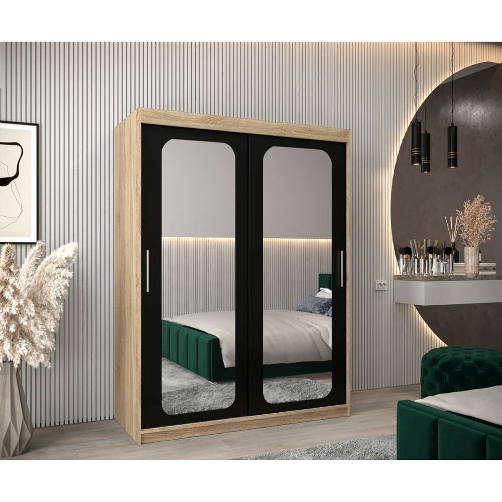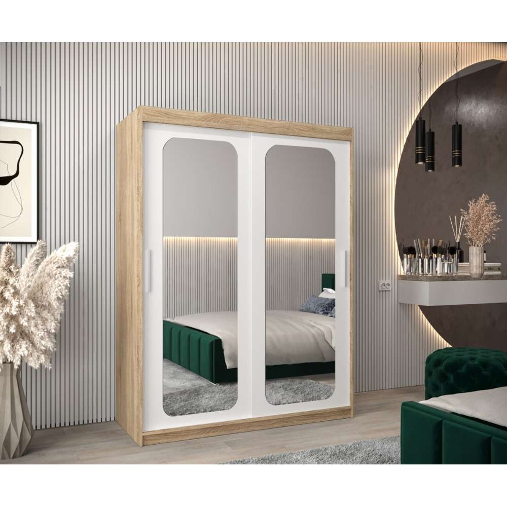 Garderobeskap PROMO T3 150x200 cm - eik sonoma - skyvedører - speil