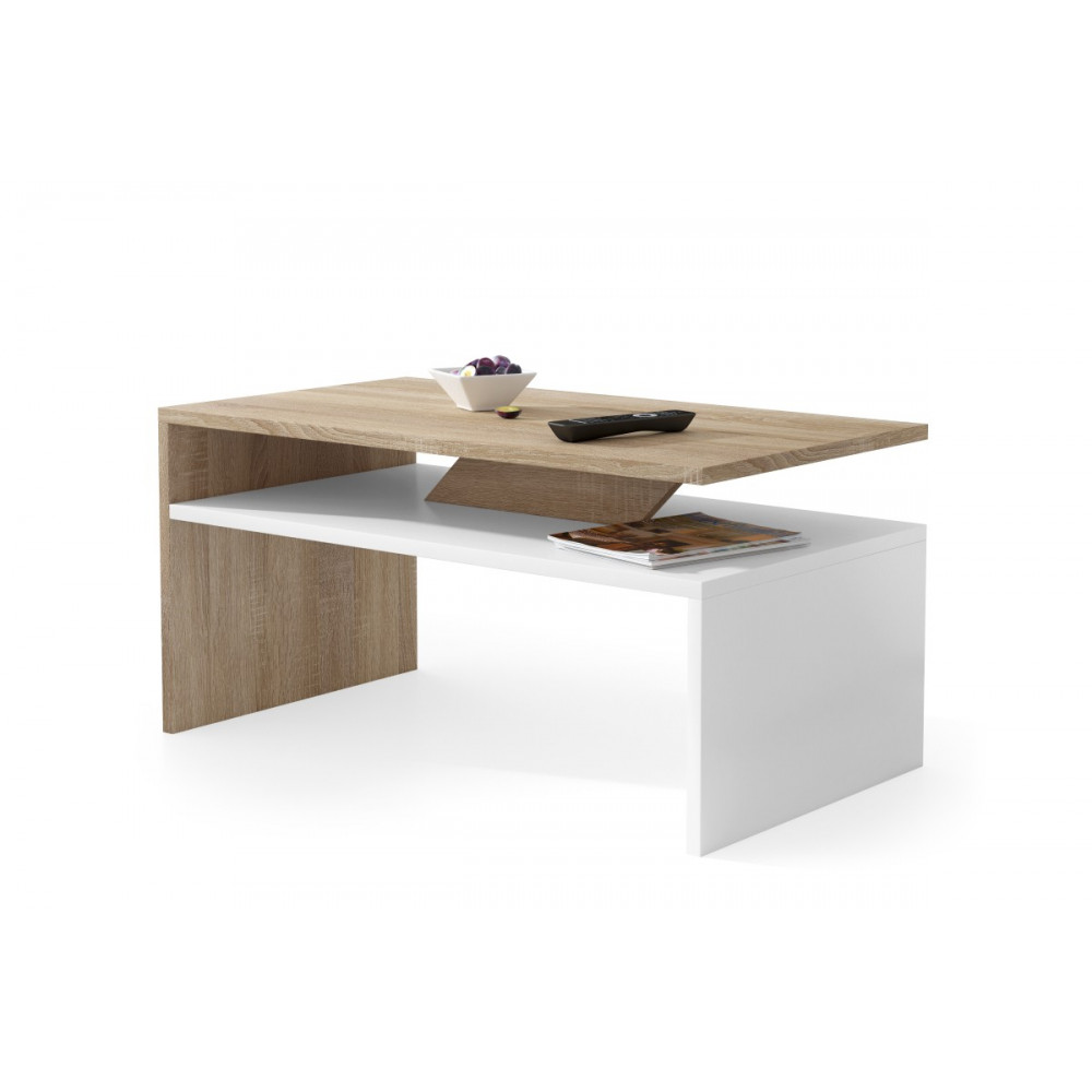 Sofabord Prima 90 cm - Sonoma eik - Hvit - med hylle