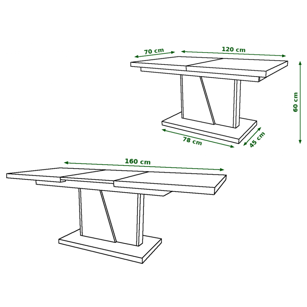 Sofabord Noir 120-160 cm - hvit matt - ileggsplate