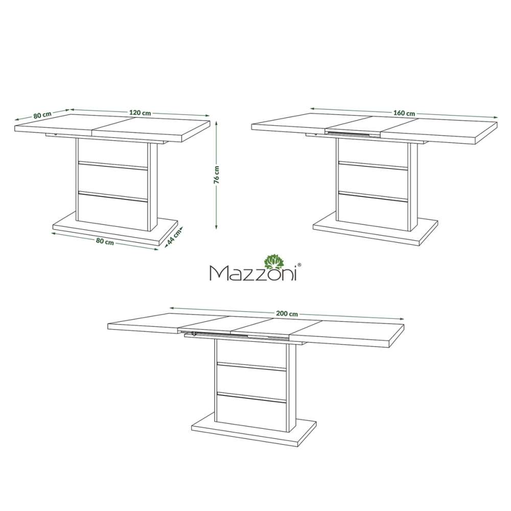 Spisebord PIANO 120-200 cm
