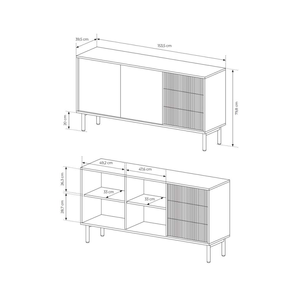 Skjenk TAVO 153x80 cm - eik - 2 dører og 3 skuffer