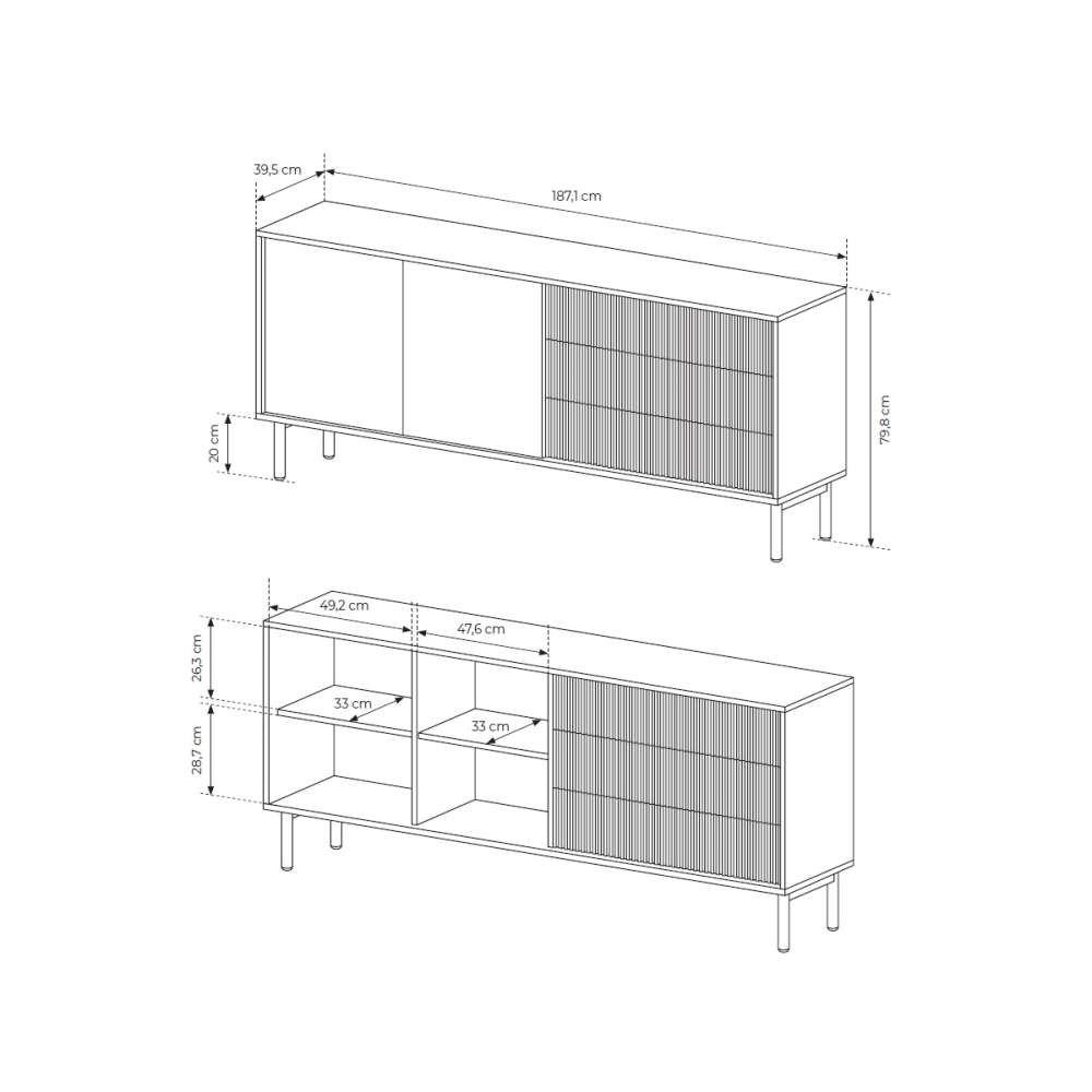 Skjenk TAVO 187x80 cm - eik - 2 dører og 3 skuffer