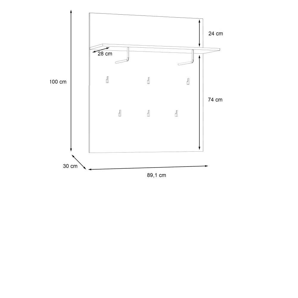 Veggpanel TRONDHEIM - hylle og 6 knagger