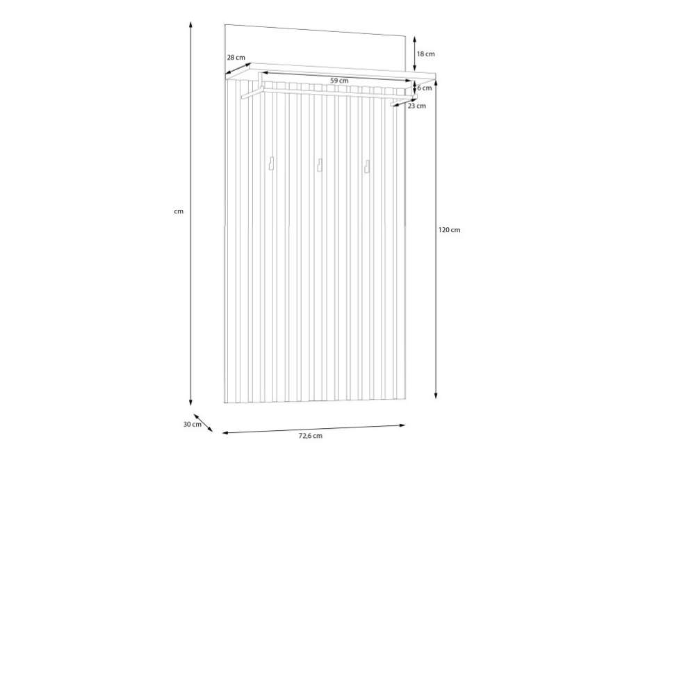 Veggpanel TRONDHEIM - spiler, hylle og 3 knagger