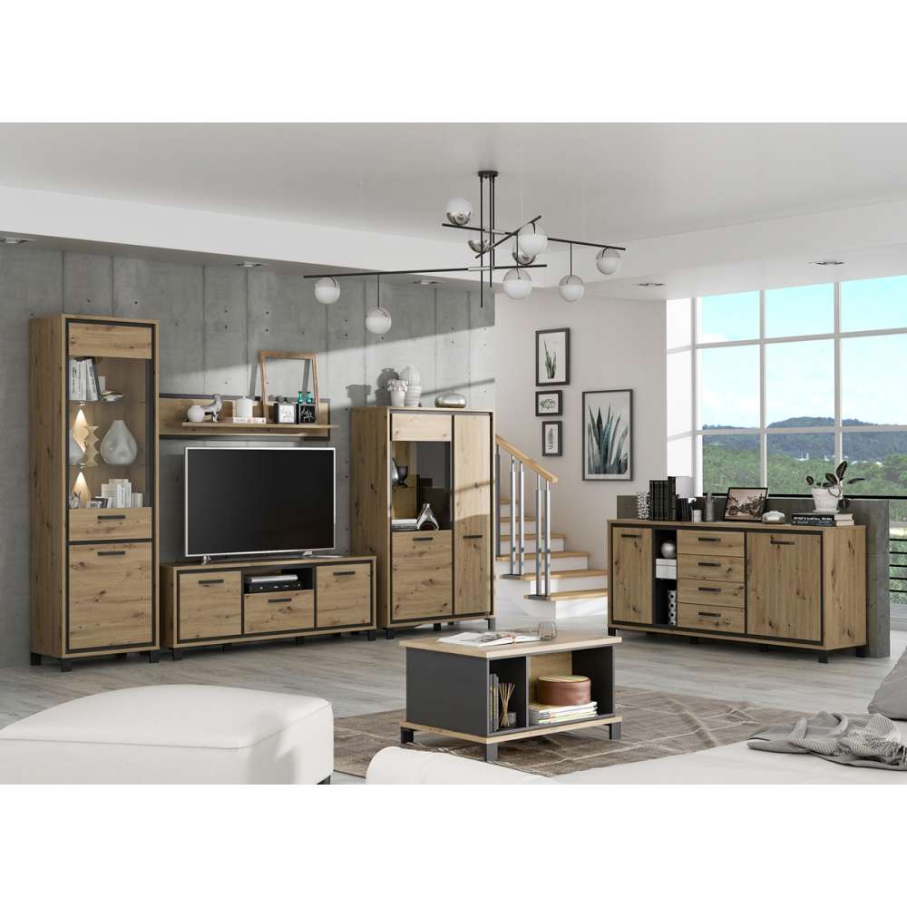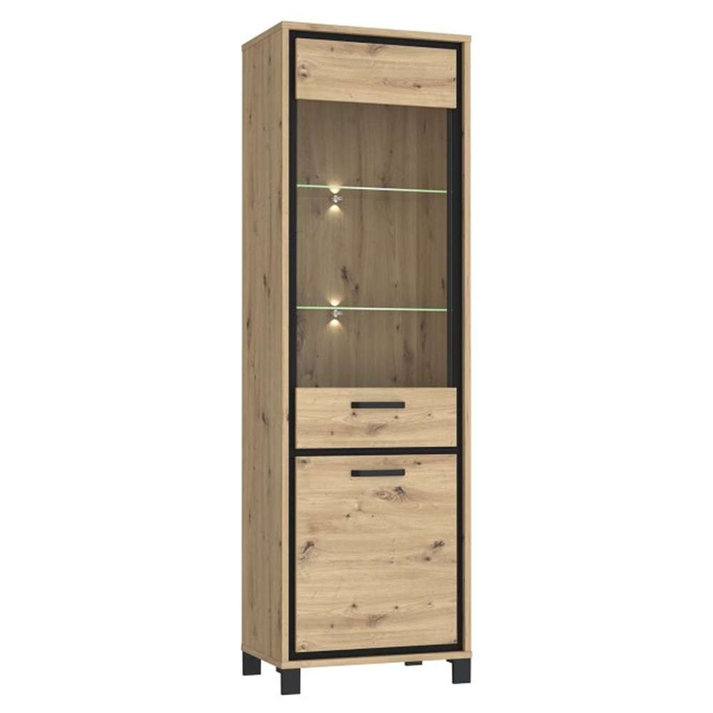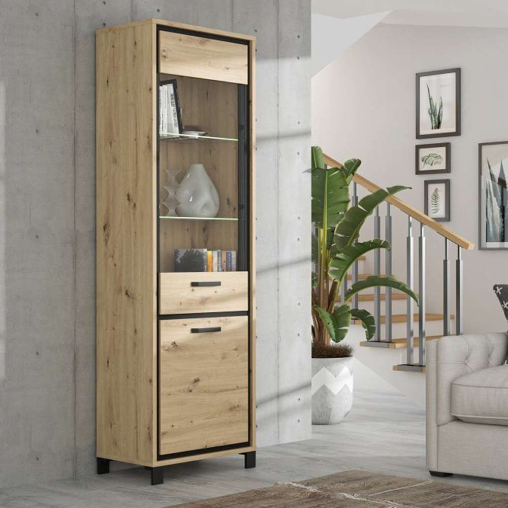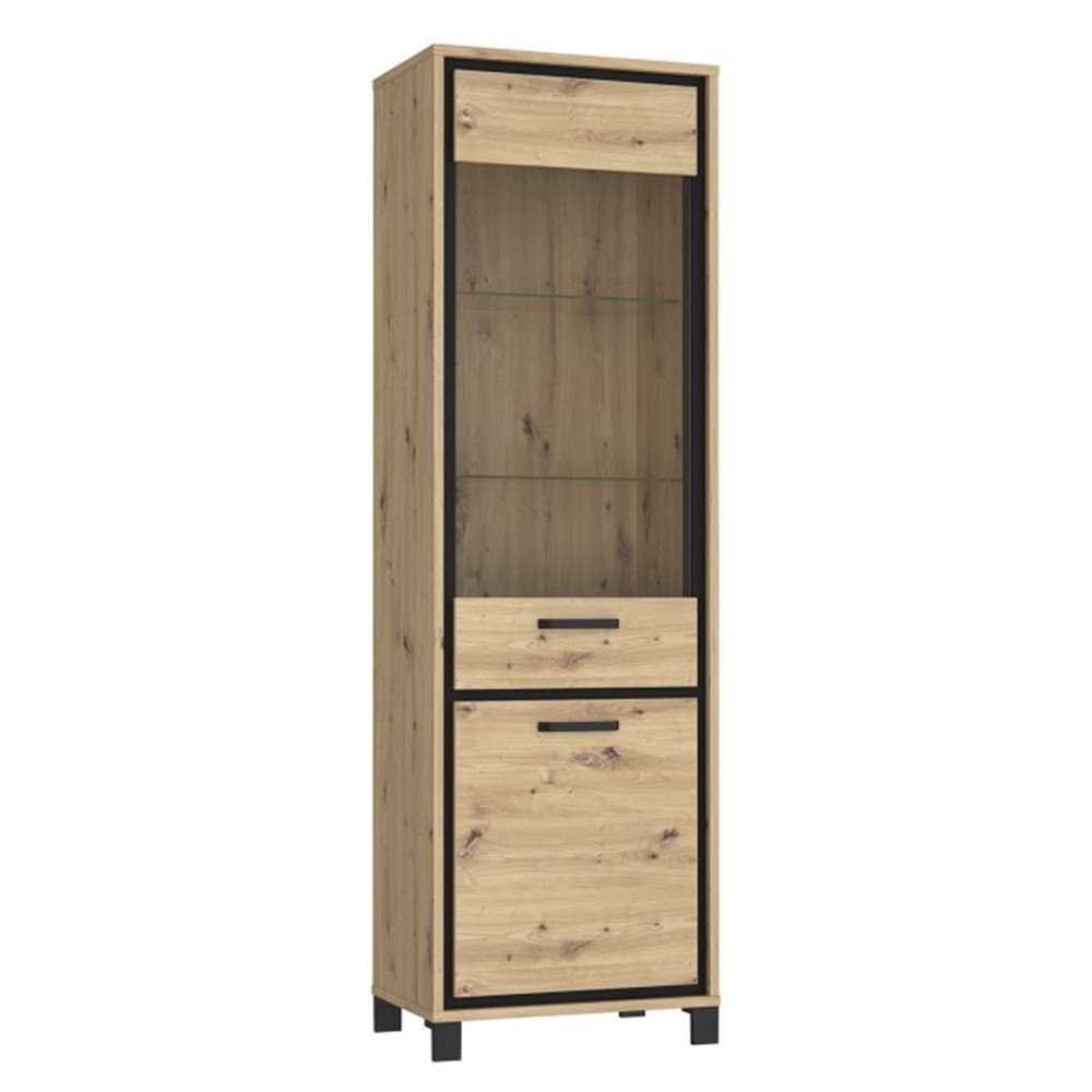 Vitrineskap TRONDHEIM 65x209 cm - 1 dør - eik artisan - eik svart