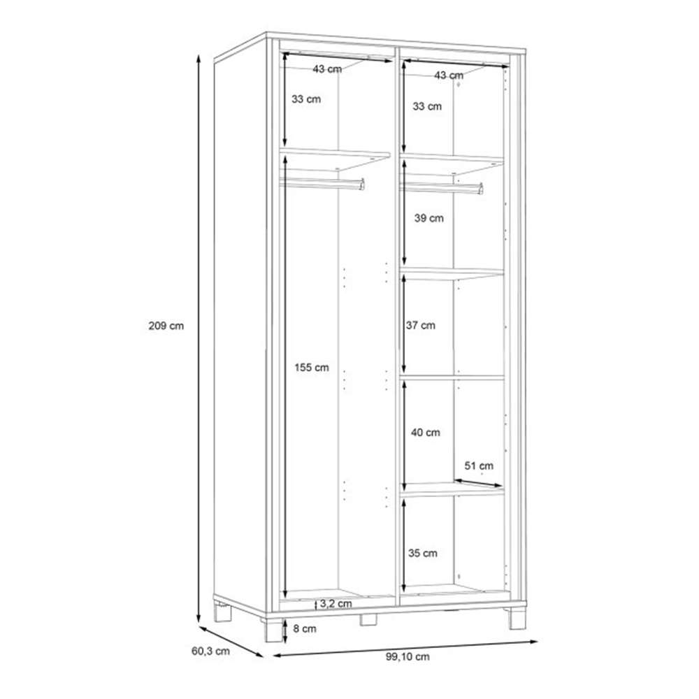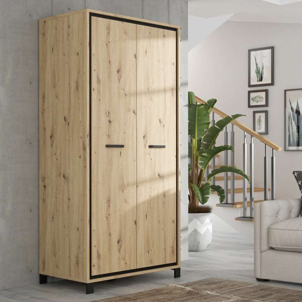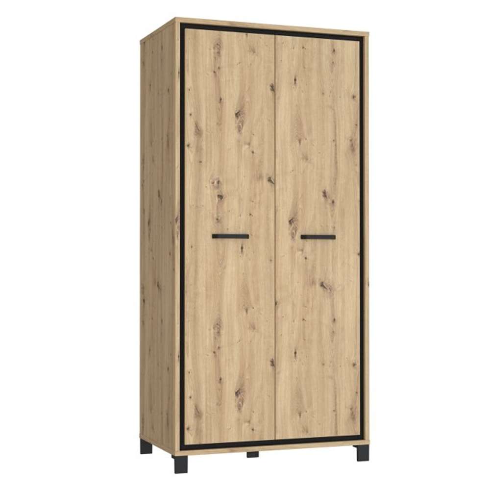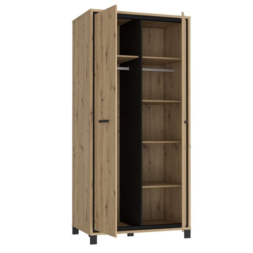 Garderobeskap TRONDHEIM 100x209 cm - 2 dører - eik artisan - eik svart
