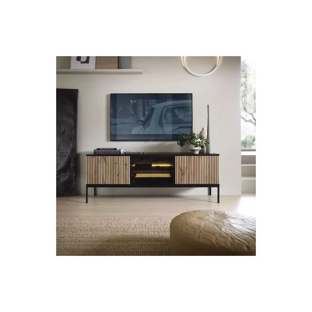 Tv-benk SENTO - sort med eik - høye ben - med belysning