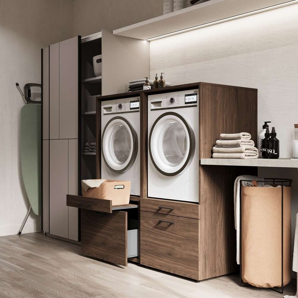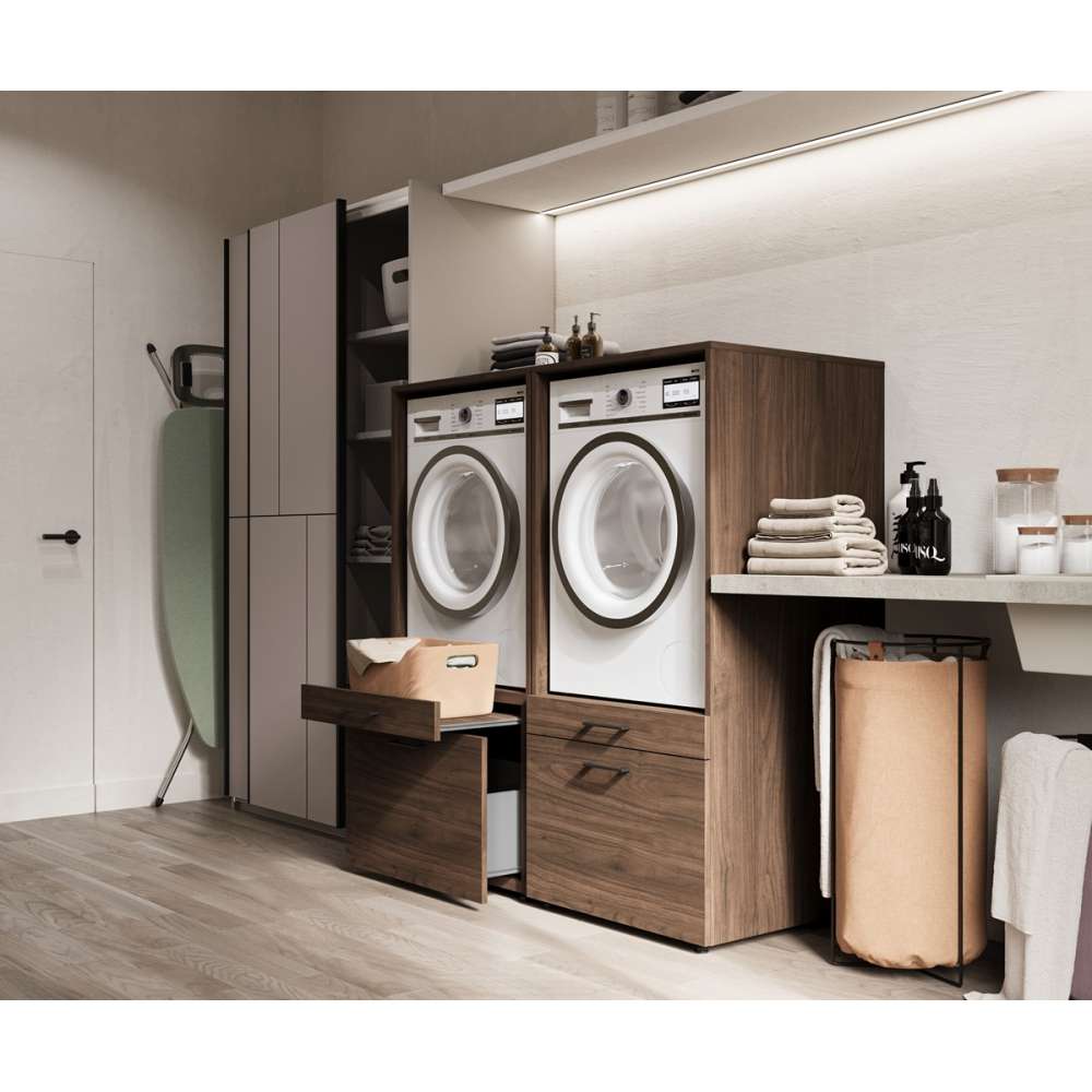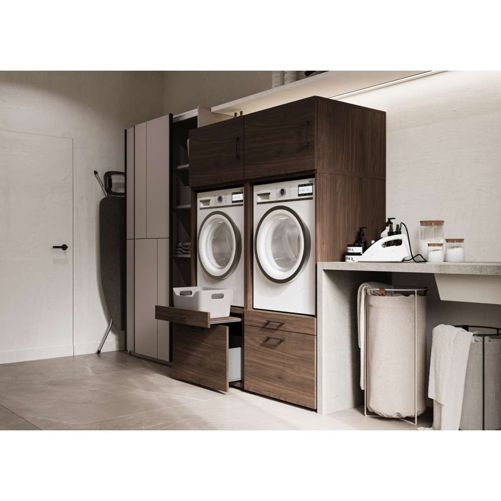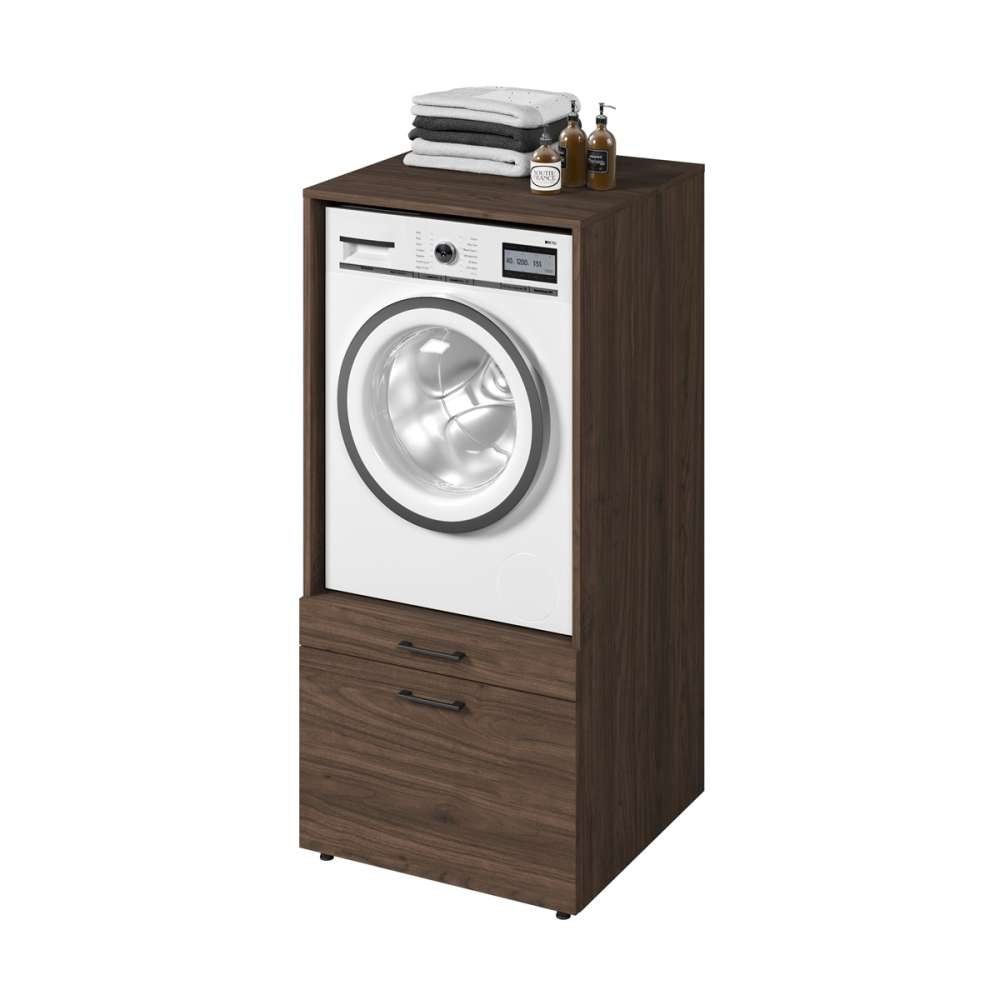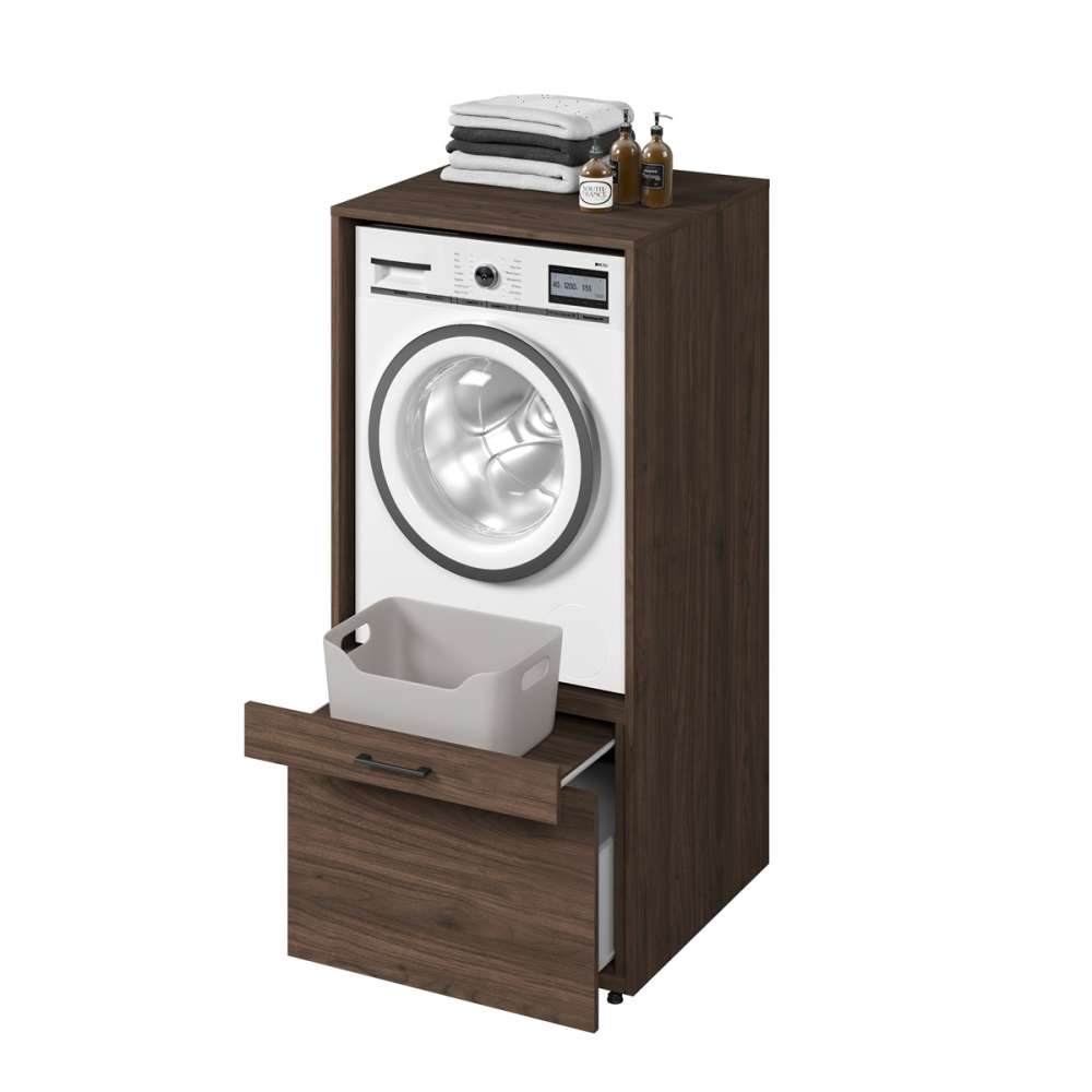 Skap til vaskemaskin og tørketrommel ASA - valnøtt med uttrekkbare hyller og skuffer