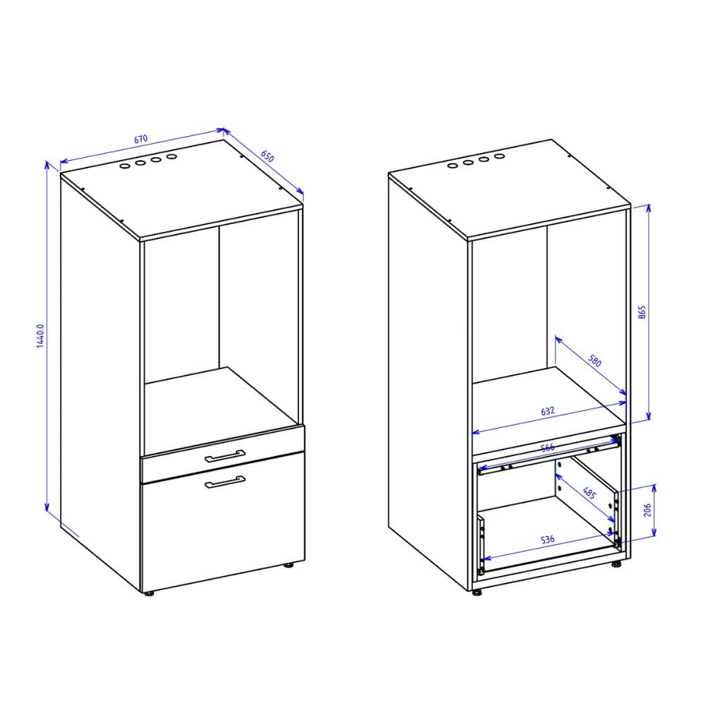 * To stk frittstående og separate skap.