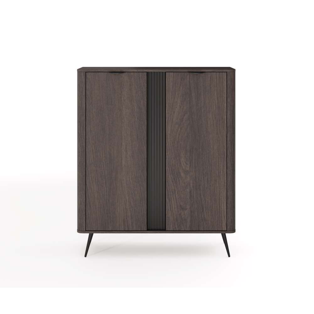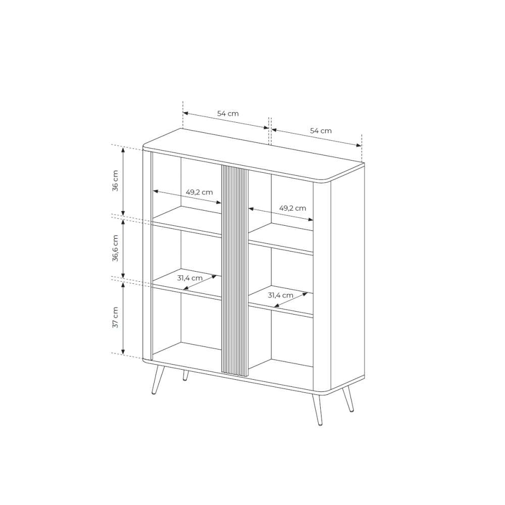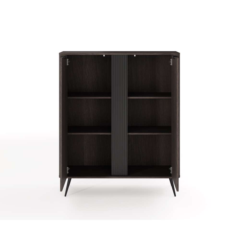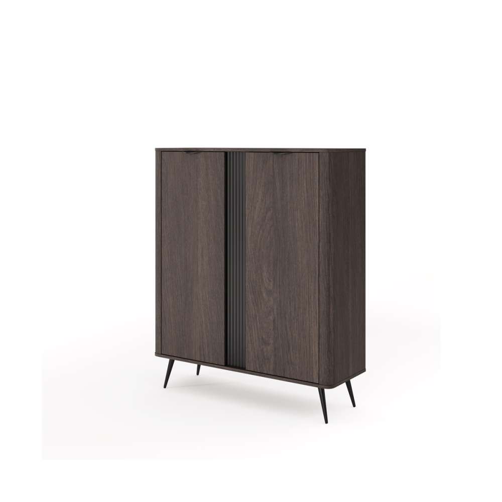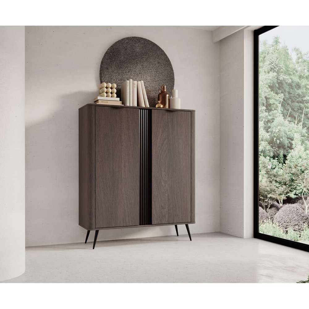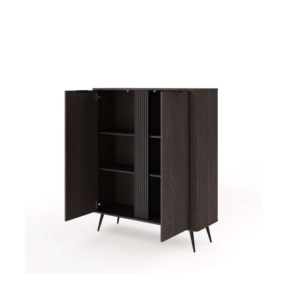 Skap VERIS 113x134 cm - mørk eik - høye ben - med hyller