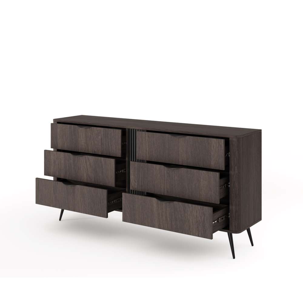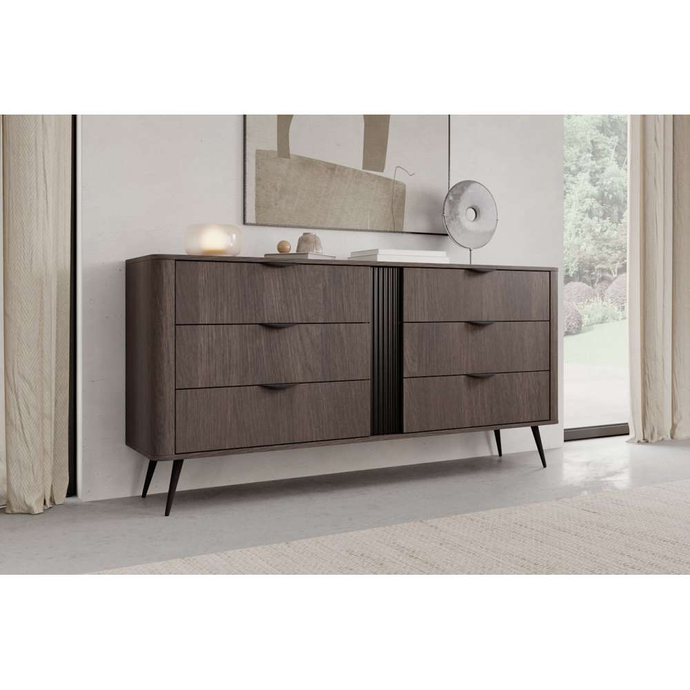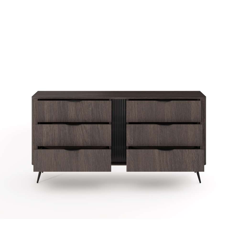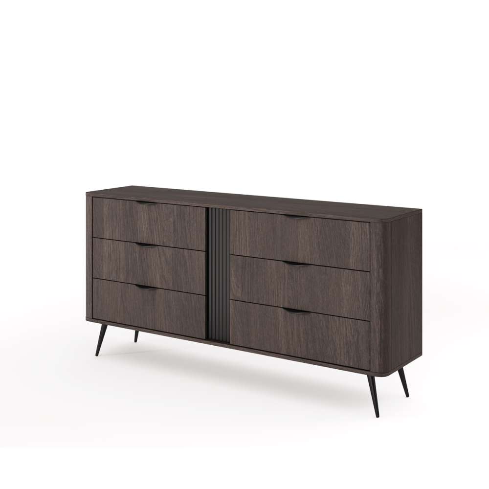 Kommode VERIS 163x81 cm - mørk eik - høye ben - med skuffer