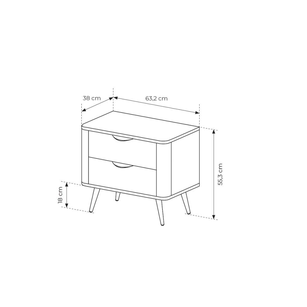 Nattbord VERIS 63x55 cm - mørk eik - høye ben - med skuffer