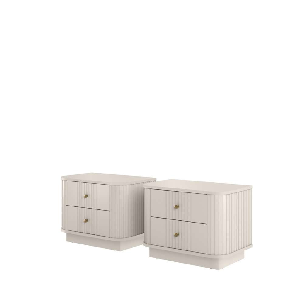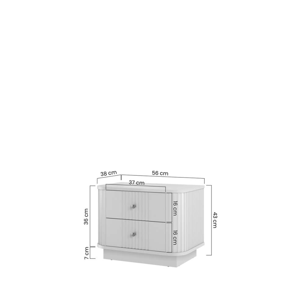 Nattbord VESPER - 2 skuffer, avrundede kanter, riflede fronter