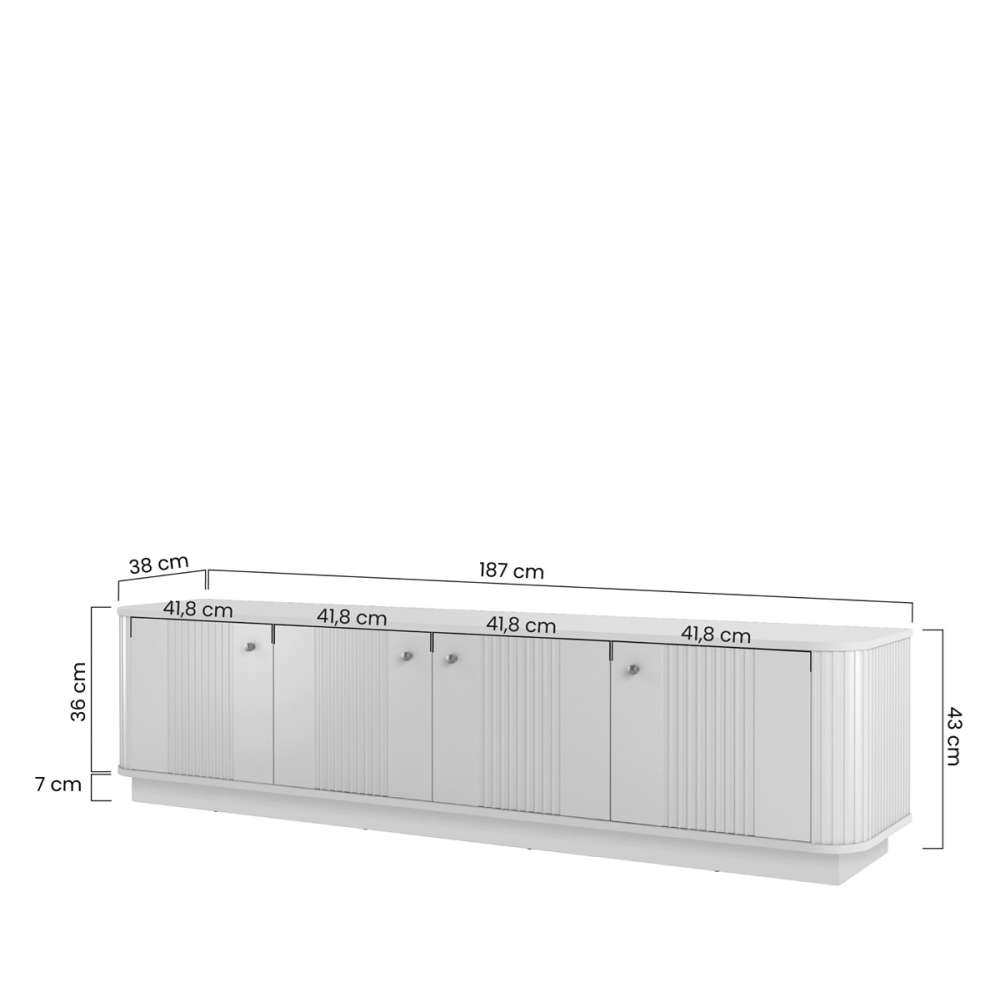 Tv-benk VESPER - 4 dører, avrundede kanter, riflede fronter