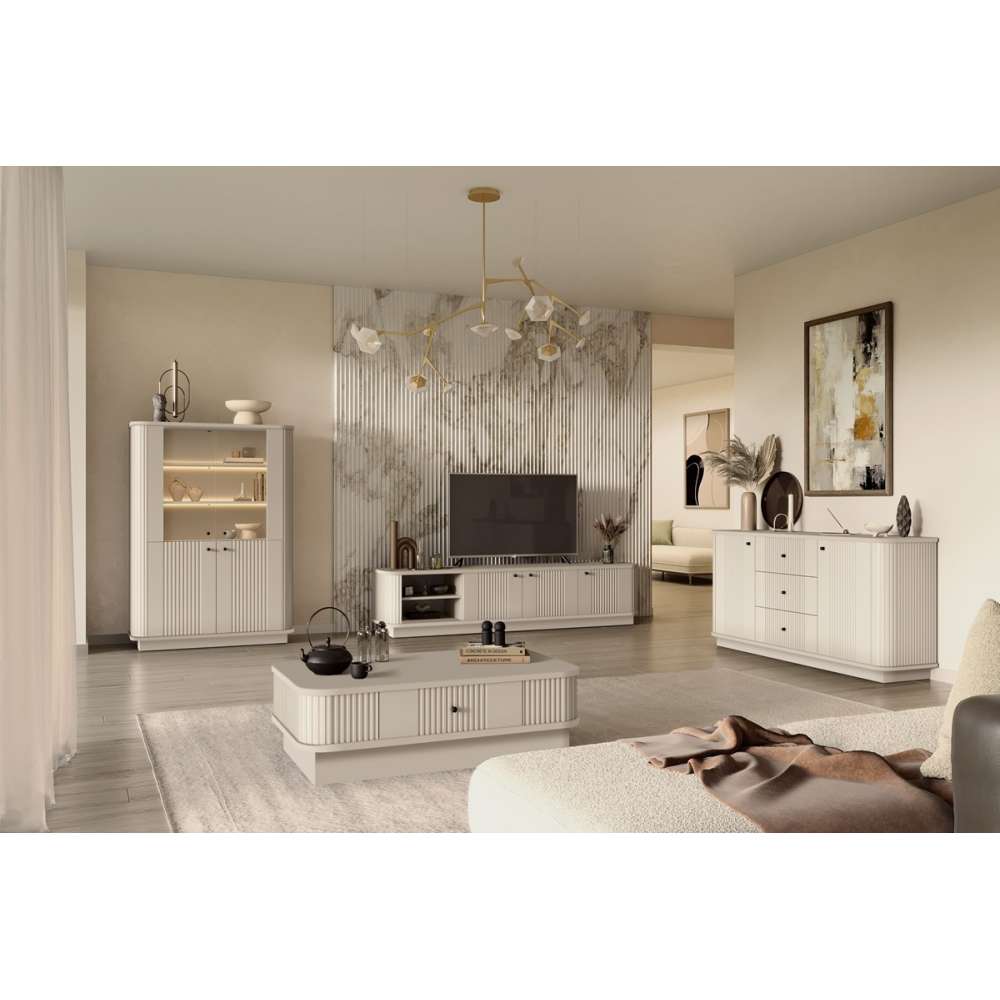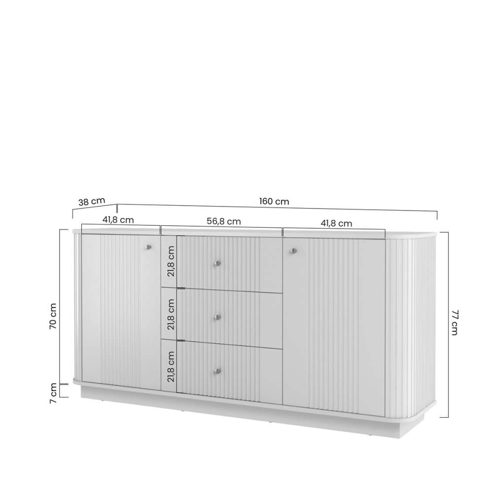 Skjenk VESPER - 2 dører, 3 skuffer, avrundede kanter, riflede fronter