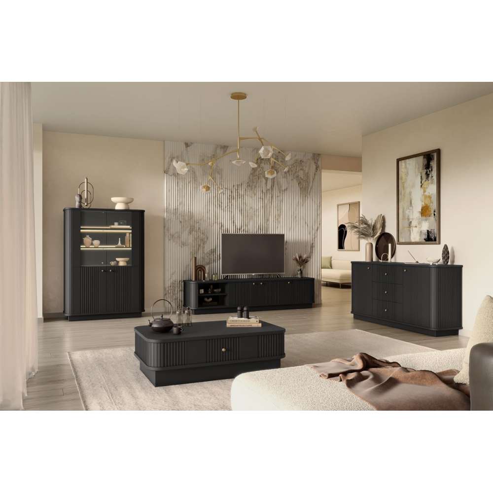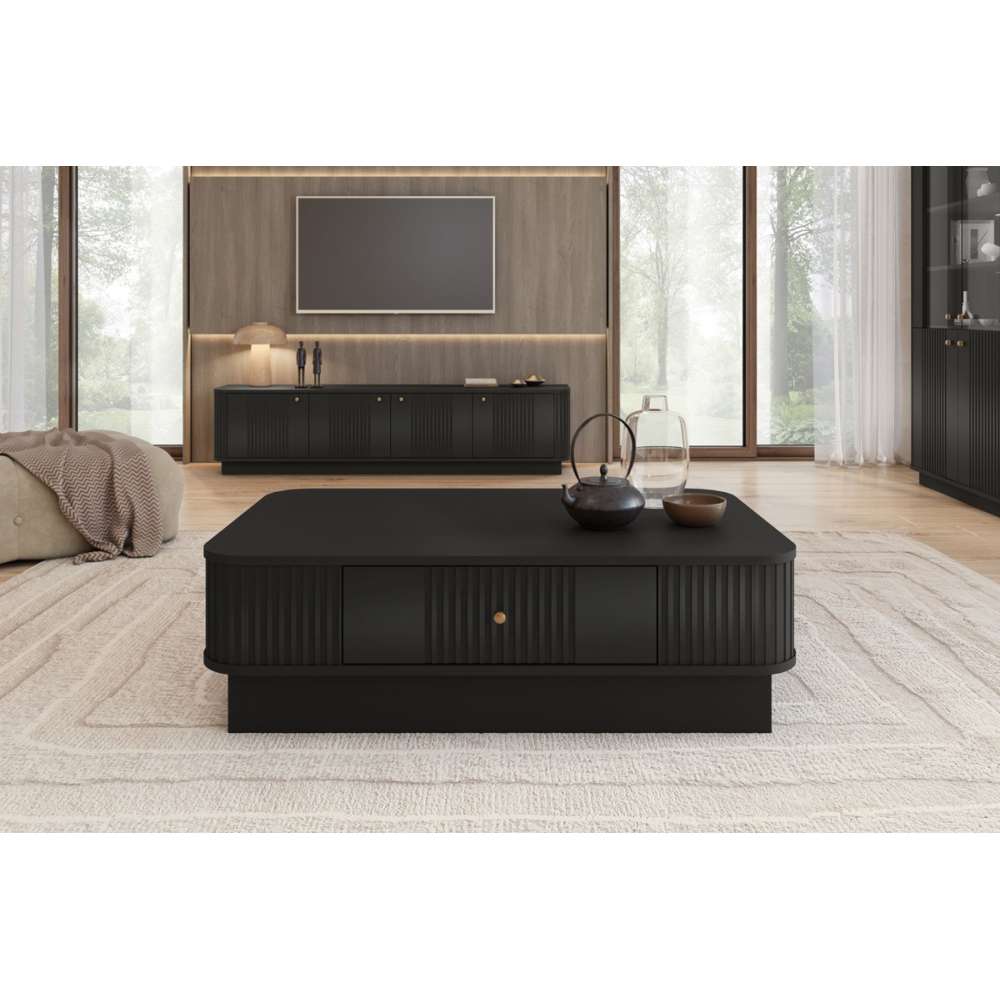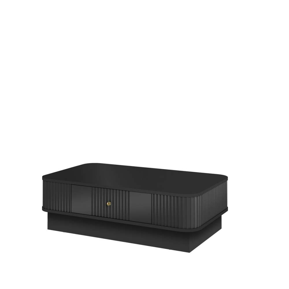 Sofabord VESPER - svart matt - 1 skuff , avrundede kanter, riflede fronter