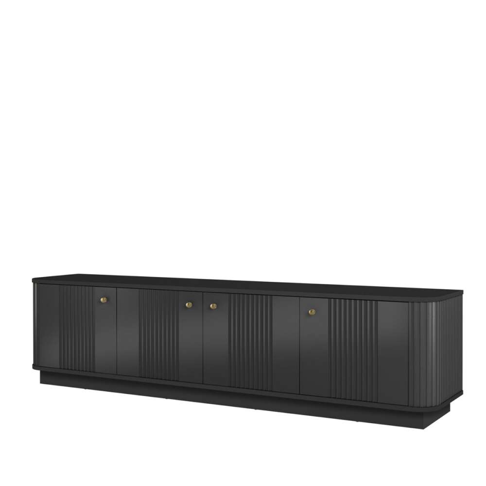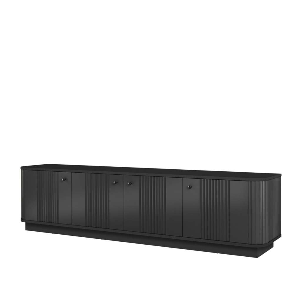 Tv-benk VESPER - svart matt - 4 dører , avrundede kanter, riflede fronter