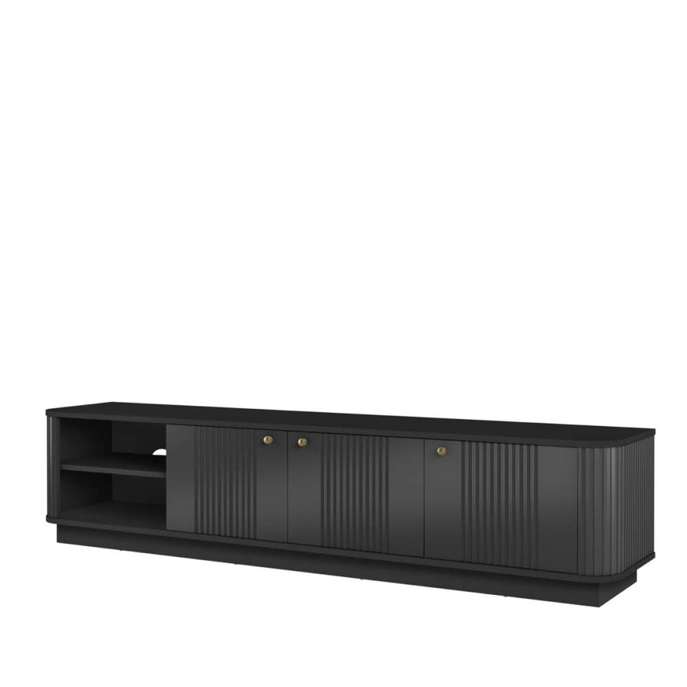 Tv-benk VESPER - svart matt - 3 dører , avrundede kanter, riflede fronter
