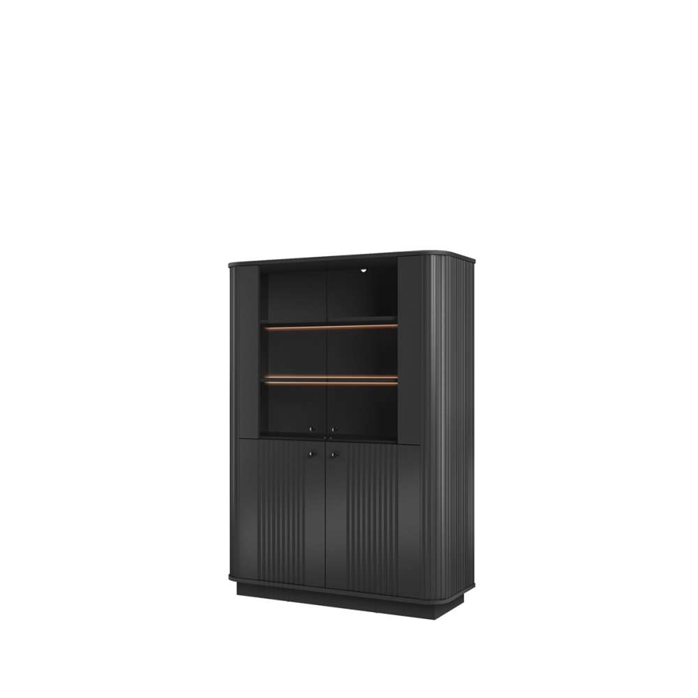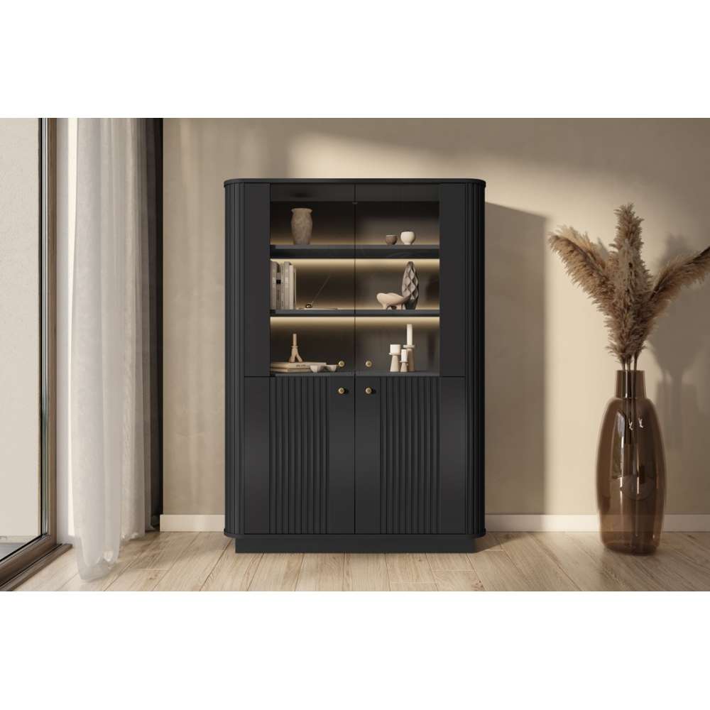 Vitrineskap Vesper - 103x148 cm - 4 dører - svart matt - sokkel